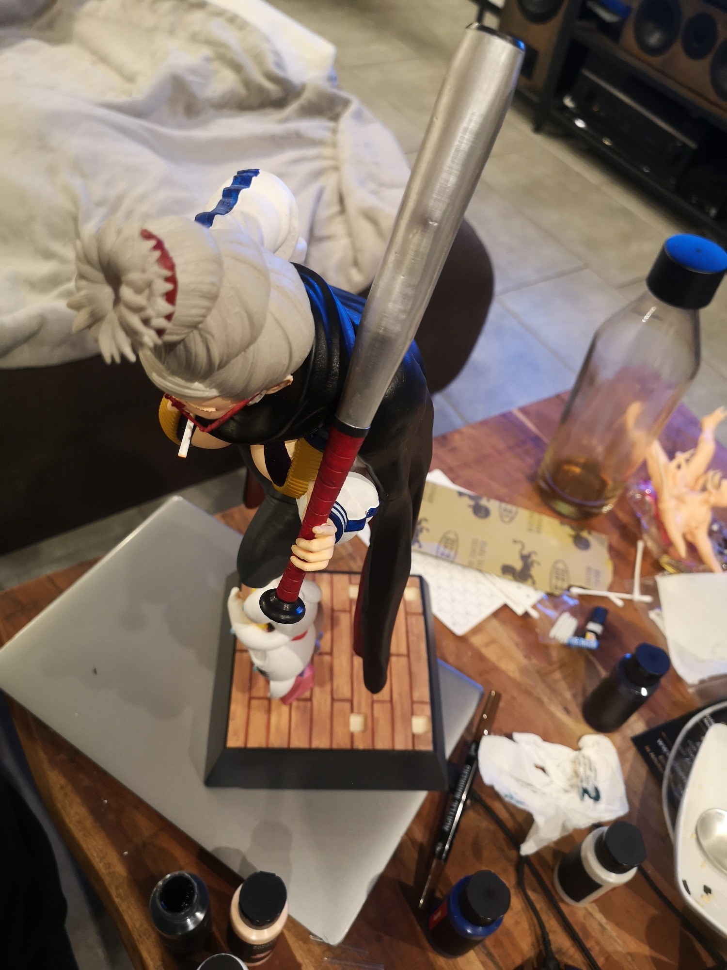 Ohne Vorstellung wie es werden wird und da es meine erste Anime Figur ist, war ich recht skeptisch, ob dies was werden wird. Sonst habe ich eher verzeihlichere Bemalungen wie Silent Hill Figuren bemalt und keine glatten, sauberen Flächen. Aber das Ergebnis beeindruckt mich doch selbst. Es war nicht leicht, ging aber dann doch recht gut, was ich mir so vorgestellt habe, dann umzusetzen. Einfach mal anfangen war hier wieder die richtige Entscheidung. Jetzt haben wir eine 49 cm große Figur, für die man sonst hätte zig hunderte Euros bezahlen müssen und sie ist nun auch noch selbstgemacht!