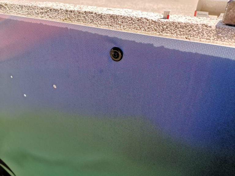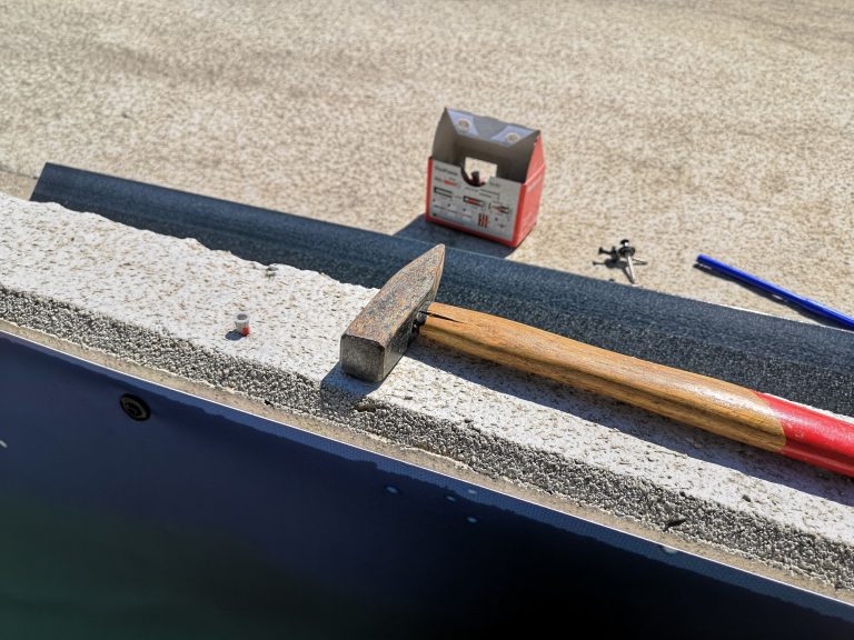 Ich wollte aber direkt an die Fassade, habe mir Spengler-Schrauben, welche eine Unterlegscheibe mit Gummierung haben zugelegt in Anthrazit. 6er Dübel und noch zusätzliche Unterlegscheiben für zwischen Putz und Druck. So hat die Spengler-Schraube rundum Auflagefläche und liegt sauber auf der rauen Fassaden Oberfläche auf. Ich konnte bei Erstmontage den Druck eigentlich sehr gut spannen, sodass keine großen Falten entstanden. Jetzt muss ich das ganze auf der Fläche mal beobachten, wie sich die Plane setzt und bei Wind und Wetter verhält. Starker Wind kam schonmal nicht unter die Plane, das hält soweit flach am Putz. Aber es kann sein dass ich die Tage dann nochmal Nachspannen muss. Ich werde berichten...