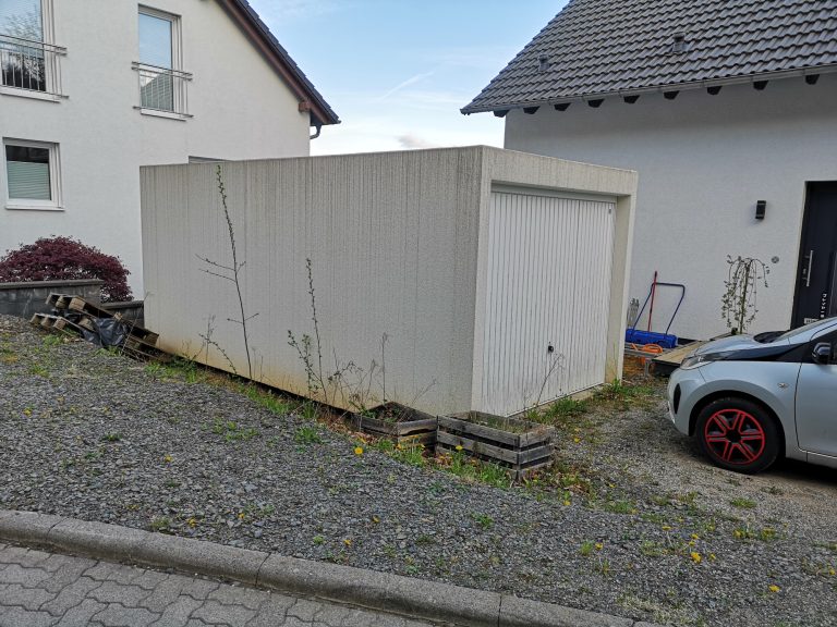 Unsere 4 Jahre alte Garage sieht, dank Lage gegenüber eines Waldes, aus wie 20 Jahre alt.