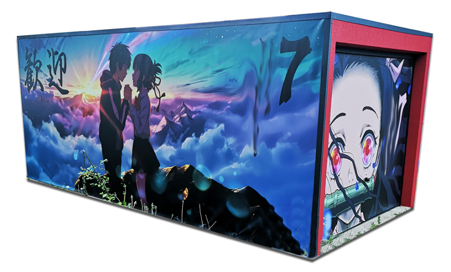 Ich konnte einfach nicht anders... Die Farben der Motive sind tagsüber so prächtig, die Nacht durfte da nicht vernachlässigt werden. Also ein Angebot bei Govee abgewartet und deren 4er RGBW Fluter Set bestellt. Ein paar Änderungen und Verlängerungen an den Kabeln waren nötig, hier etwas Strom legen, da etwas bohren und tadaaa... Ein Traum, das erste mal im Dunkeln eingeschaltet und WOW!! Die Szene mit den Wolken und der Himmel, die bunte Beleuchtung gibt dem ganzen Motiv nochmal richtig Tiefe. Würde jetzt noch die passende Musik laufen, Tränen wären garantiert! Dies wertet das ganze Projekt nochmals drastisch auf. Zudem habe ich noch mit einer dicken Ladung Schotter das Loch zwischen Garage und der Fläche davor aufgefüllt mit 2 Lagen 60er Styropor dazwischen, welches ich noch über hatte. Auf dem Styropor noch 2 anthrazit WPC Dielen geklebt als sauberen Abschluss. Auch noch Reste à 3 m Länge, also genau passend zur 6 m Garage.