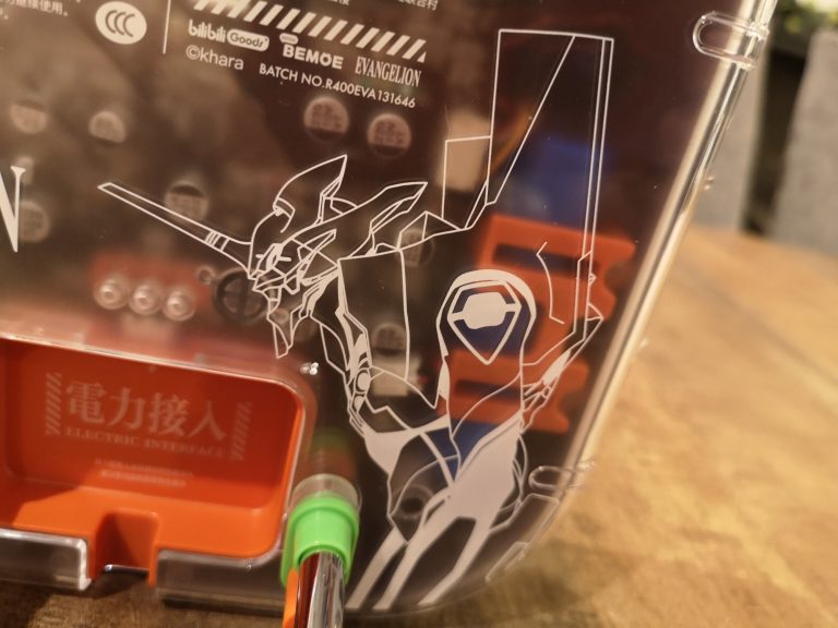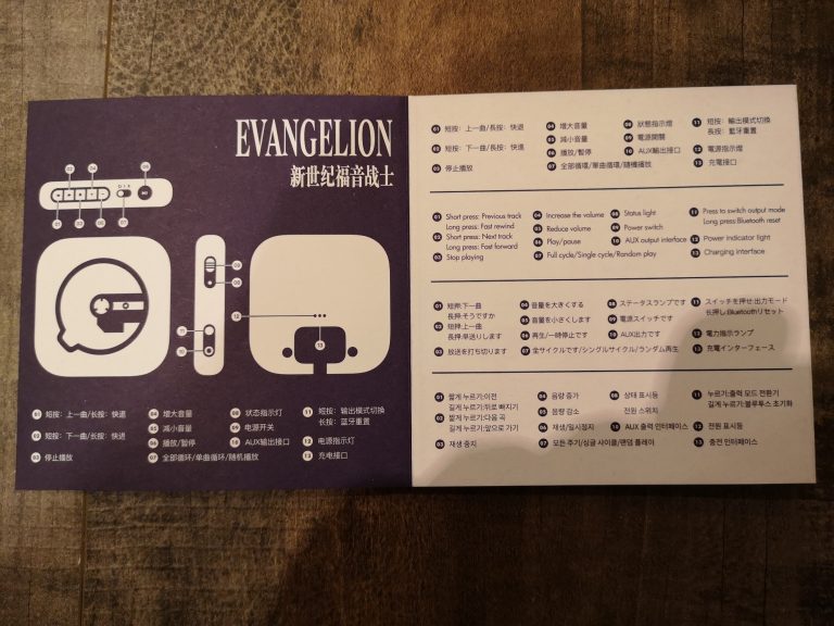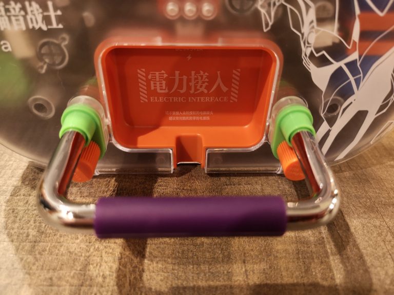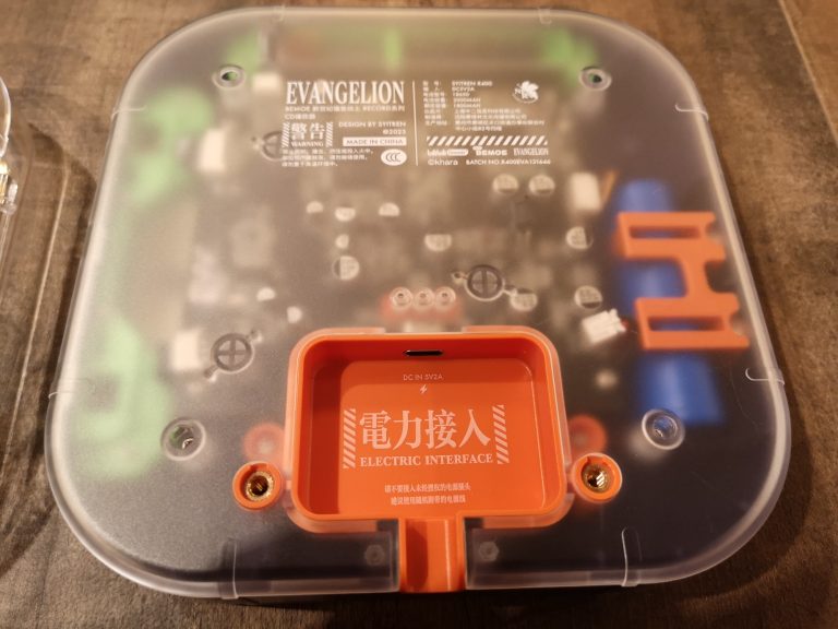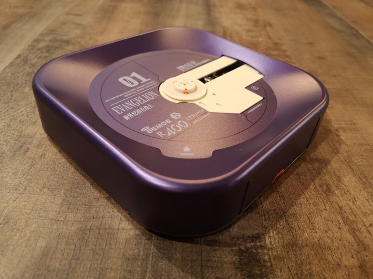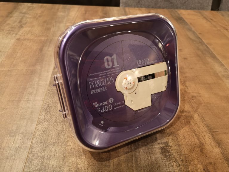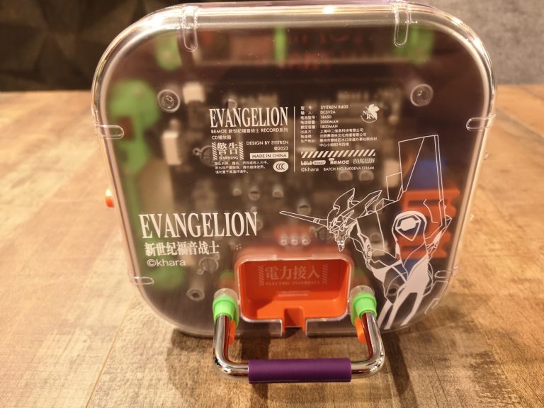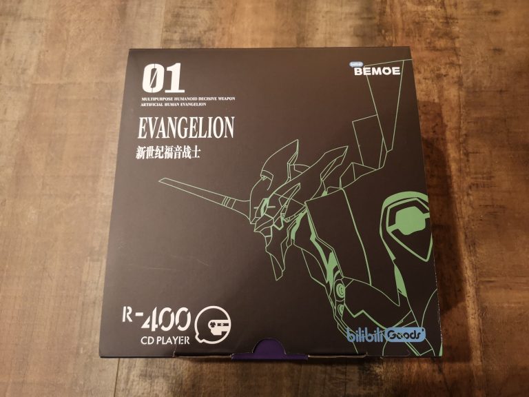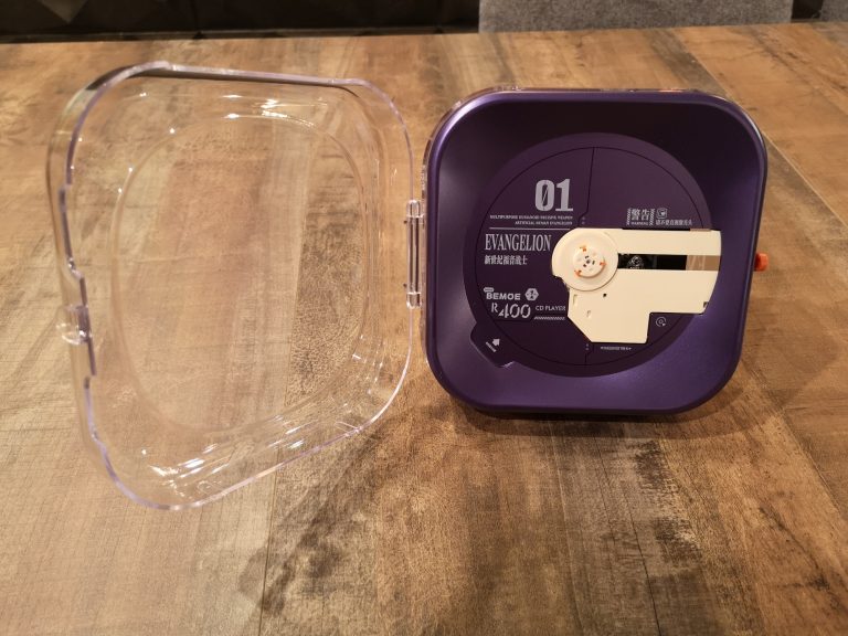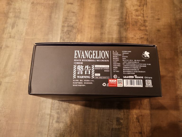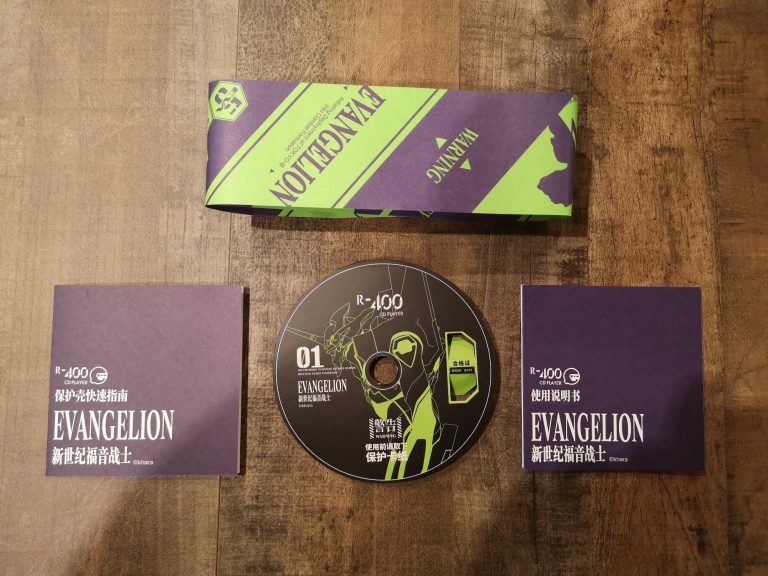 Die Farbgebung und Details sind klasse gelungen. Das metallische Violett, mit den orangen und grünen Elementen, der filigranen weißen Zeichen und Schriften, sowie dem Acryl Case, welches auch weiß bedruckt wurde, lassen alles sehr hochwertig, detailverliebt und authentisch erscheinen. Abrunden tuen dies dann noch das orangene USB-C Ladekabel sowie der kleine verschraubbare Metallständer mit Farbakzenten. Eine komplett gelungene Präsentation in wieder sehr durchdachten Kartons und Inlays mit Banderole. In Summe habe ich jetzt mit Versand aus Asien 120 € bezahlt, was mir das ganze doch mehr als Wert ist. Wer also physische Audioträger und Evangelion liebt, MUSS hier zuschlagen. Angeschlossen über Klinke wird dieser CD-Player fester Bestandteil meiner HiFi-Anlage werden und eventuell per Audio-Grabber mit im Stream für musikalische Unterhaltung sorgen.