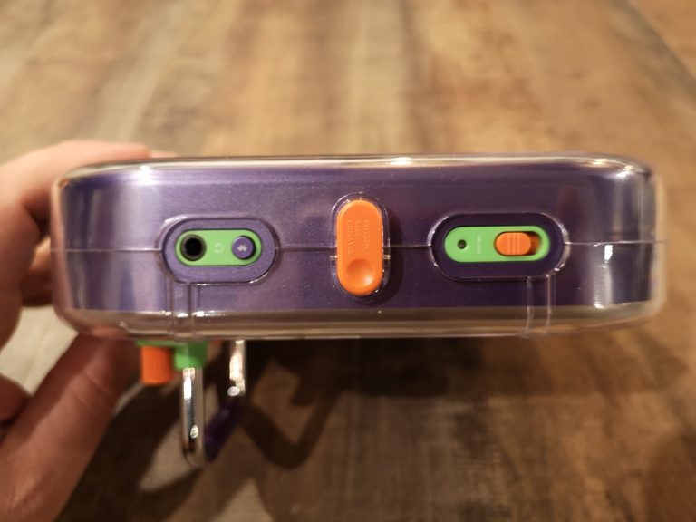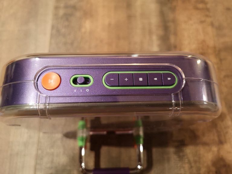 Die mechanische Bedienung macht richtig Freude im Zeitalter von Touch. Repeat, Shuffle und Normal lässt sich zum Beispiel über einen Schiebeschalter regeln. Etwas nostalgisch, aber sehr angenehm. Ein großer Play/Pause-Taster und die üblichen Stop, Weiter, Zurück, etc. sind vertreten, sowie Lauter/Leiser und ein Ein/Aus Schiebeschalter. Über der Klinken-Buchse ist noch der Bluetooth Pairing Button. Kopfhörer oder Boxen auf Pairing gestellt und dann einmal den Button am Player betätigt, schon verbunden. Trotz klassischer Bedienung macht sich die aktuelle Technik auch bemerkbar. Mit Bluetooth 5.3 und MP3 Wiedergabe stehen die maximalen Möglichkeiten die eine CD noch zu bieten hat zur Verfügung. So lassen sich auch auf dem hübschen physischen Medium noch Mixtapes basteln ohne auf die 80 Minuten beschränkt zu sein, bei MP3 lassen sich natürlich mit den 700 MB Speicherkapazität einer normalen CD-R dann deutlich mehr Minuten speichern!