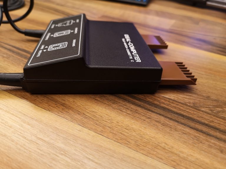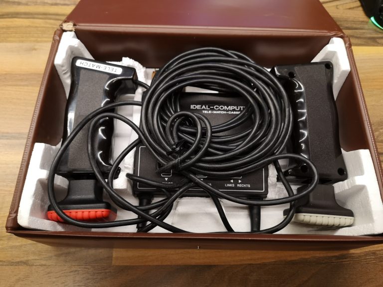 1977 brachte ITT Schaub-Lorenz mit der Ideal-Color TV-Reihe eine Möglichkeit auf den Markt, seinen Fernseher mit Modulen zu erweitern. Durch das entfernen der Fernbedienung, welche eingesteckt im TV als Direktwahltasten fungierte, offenbarte sich ein Modul-Schacht. Dieses Konzept übernahmen auch andere deutsche Hersteller für ihre hochpreisigeren TV-Linien. Etablieren am Markt konnte sich diese Technologie jedoch nicht. Ideal-Computer war die Bezeichnung für Geräte dieses Anschlusses. Den Start machte Tele-Match-Cassette A mit den bekannten 4 Pong Games und dem General Instruments (GI) Chip. Es folgten ein Jahr später 3 weitere Cassetten, darunter das hier vorgestellte Panzerspiel als Tele-Match-Cassette C. Basis bildete der GI AY-3-8710. Der Anschluss geschieht direkt über die eigentliche Platine, welche mit der Kunststoffumhausung einen Stecker formt. 24-Pins standen somit zur Verfügung, auf jeder Seite 12. Einen internen Lautsprecher hatte die Konsole nicht.