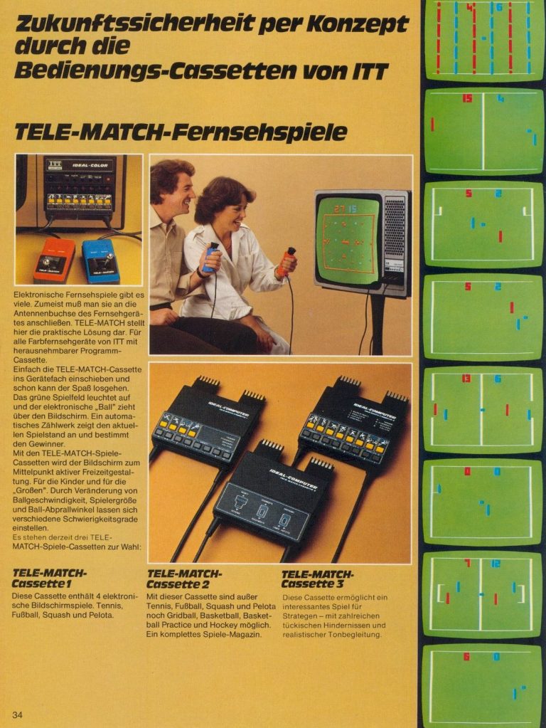 Eine von zahlreichen Pong-Konsolen und Variationen. Bei dieser hier handelt es sich um ein besonderes Format, welche z.T. ITT, Graetz und Ingelen TVs zum Einsatz kam. Diese hatten einen speziellen Modul-Schacht an der Front. Release war 1978.