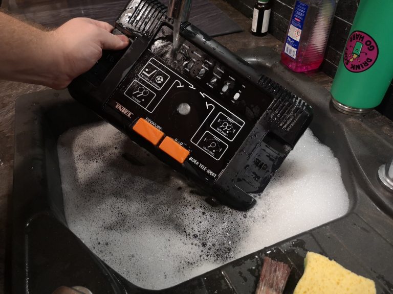 Den Frischling der Sammlung bekam ich recht günstig in einem verwahrlosten Zustand. Deswegen nutzte ich die Gelegenheit und habe mal das Showcase-Video direkt mit Reinigungsvorgang erstellt, zudem noch extra Fotos dazu beigefügt. Kurzerhand die Oberschale und Regler-Abdeckungen frisch gewaschen und geschruppt, als ich die Konsole für das Video eh offen hatte. Die Metallteile hatten zum Glück noch die Schutzfolie drauf, was sie natürlich wie neu wirken lässt. Diese musste ich teils aber neu ankleben. Getrocknet habe ich die Teile fix mit einem Akku-Handgebläse. Alles wieder montiert, Controller und Kabel noch mit Glasreiniger und Zewa nachgewienert und siehe da, die Maschine sieht für ihr Alter doch wieder super aus. Eine tolle Ergänzung für die Sammlung.