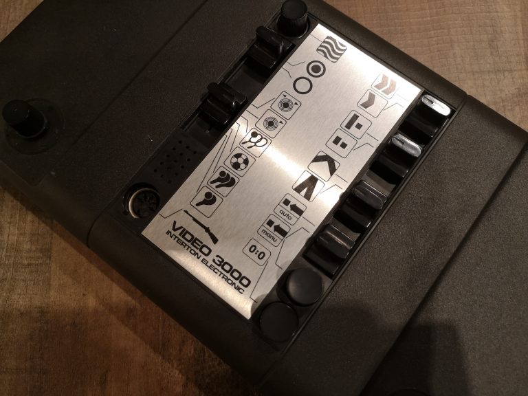 Die schwarzen Bretter von Interton hatten schon ihr Alleinstellungsmerkmal. Futuristisch flach mit abgerundeten Kanten, Piktogrammen und aufgeräumten Layout kommen sie daher. Alle Bedienelemente tummeln sich um die zentrale Metallplatte, auf der in Schwarz gedruckt die Informationen zum jeweiligen Butten befinden. Da sie dieses Konzept knallhart bei jedem Release so durchgezogen haben, mag ich die Pong Reihe doch sehr. Die bekannten 6 Spiele des AY-3-8500 Chips sind auch hier wieder vertreten. Abprall-Winkel, Geschwindigkeit und Schlägergröße sind einstellbar. Zähler-Reset und Auto- bzw. Manuell-Einwurf sind auch vorhanden.