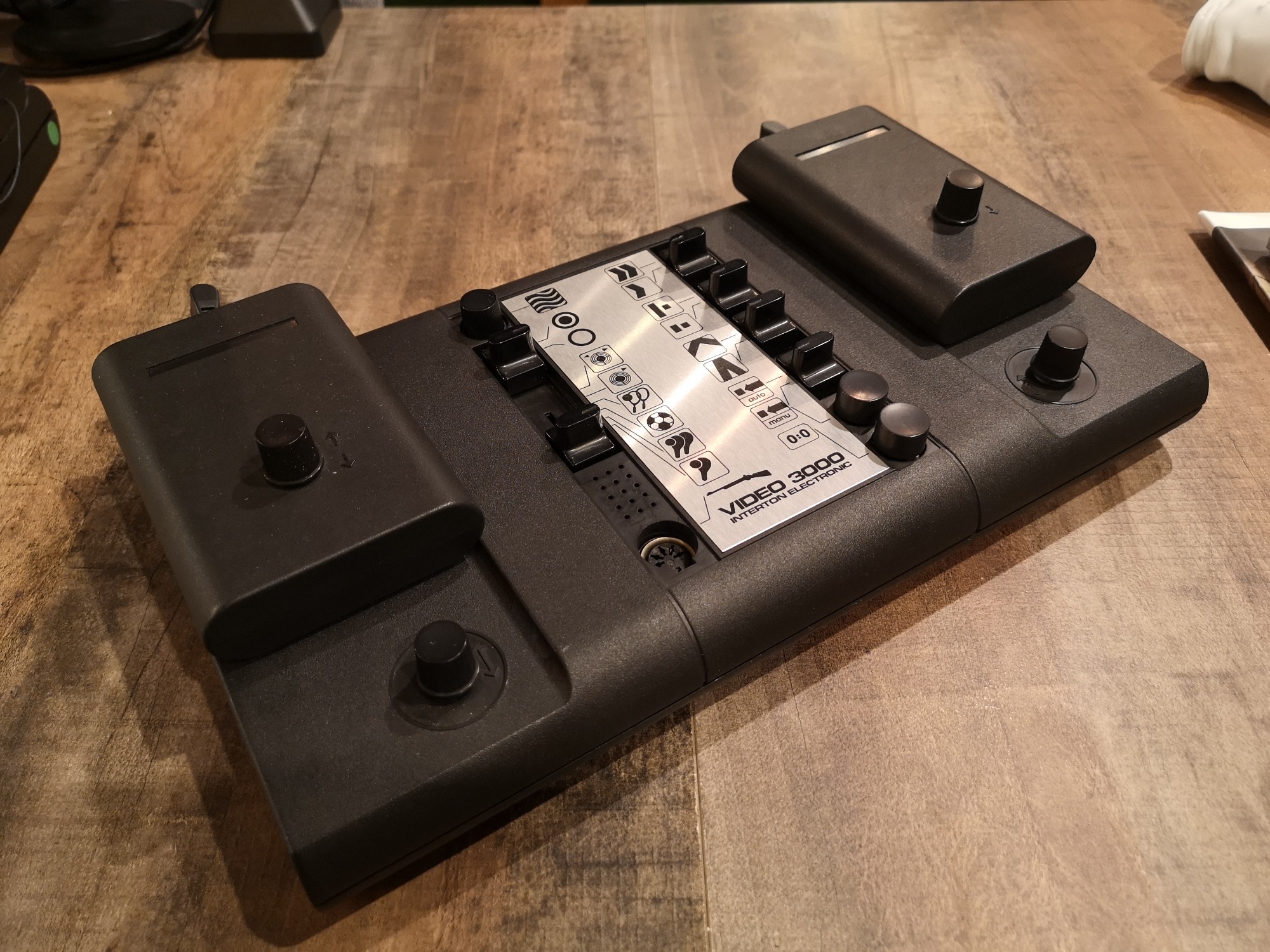 Die schwarzen Bretter von Interton hatten schon ihr Alleinstellungsmerkmal. Futuristisch flach mit abgerundeten Kanten, Piktogrammen und aufgeräumten Layout kommen sie daher. Alle Bedienelemente tummeln sich um die zentrale Metallplatte, auf der in Schwarz gedruckt die Informationen zum jeweiligen Butten befinden. Da sie dieses Konzept knallhart bei jedem Release so durchgezogen haben, mag ich die Pong Reihe doch sehr. Die bekannten 6 Spiele des AY-3-8500 Chips sind auch hier wieder vertreten. Abprall-Winkel, Geschwindigkeit und Schlägergröße sind einstellbar. Zähler-Reset und Auto- bzw. Manuell-Einwurf sind auch vorhanden.