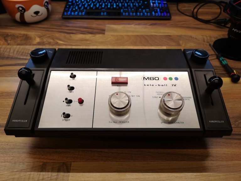 Eine von zahlreichen Pong-Konsolen und Variationen. Hier aus dem Hause MBO mit 4 Games und der Schieberegler-Steuerung. Herausgebracht in der vierten Variante im Jahr 1977.