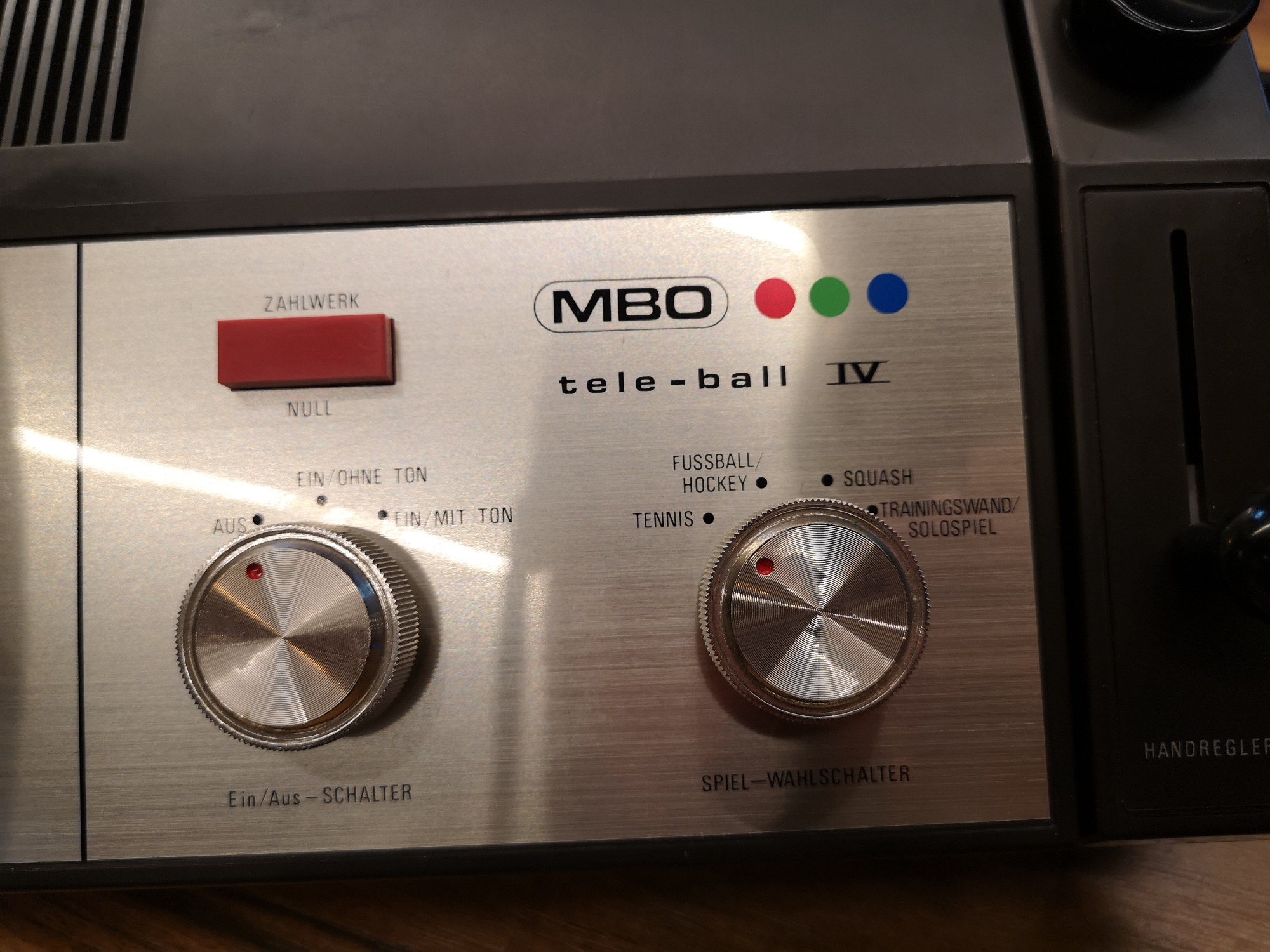 Eine von zahlreichen Pong-Konsolen und Variationen. Hier aus dem Hause MBO mit 4 Games und der Schieberegler-Steuerung. Herausgebracht in der vierten Variante im Jahr 1977.