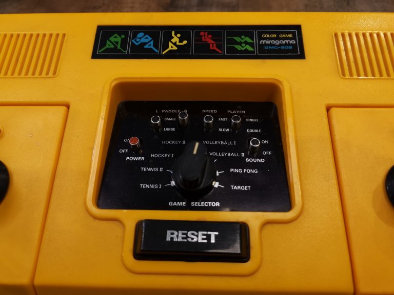 Eine von zahlreichen Pong-Konsolen und Variationen. Hier aus dem Hause Miragame mit 8 Games und der Drehregler-Steuerung. Release dieser Schönheit war im Jahre 1982.
