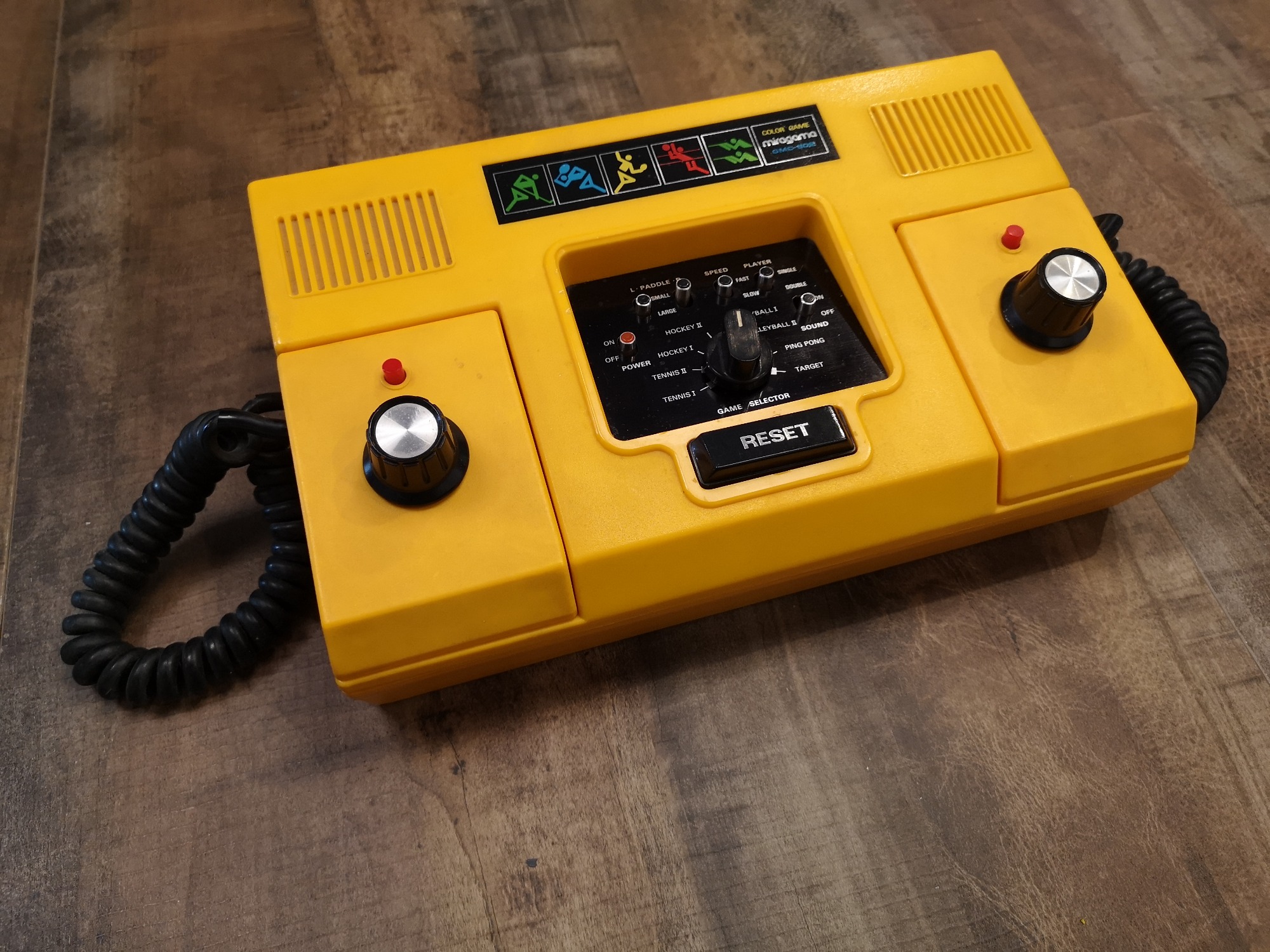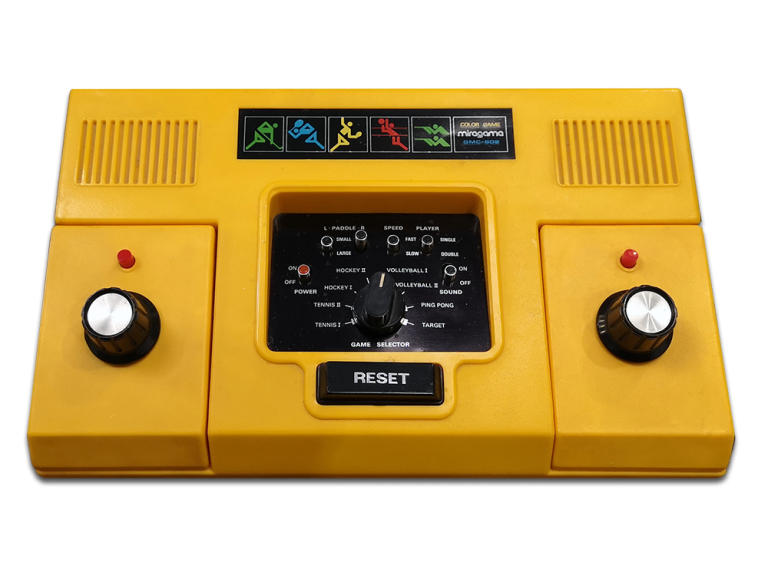 Eine von zahlreichen Pong-Konsolen und Variationen. Hier aus dem Hause Miragame mit 8 Games und der Drehregler-Steuerung. Release dieser Schönheit war im Jahre 1982.