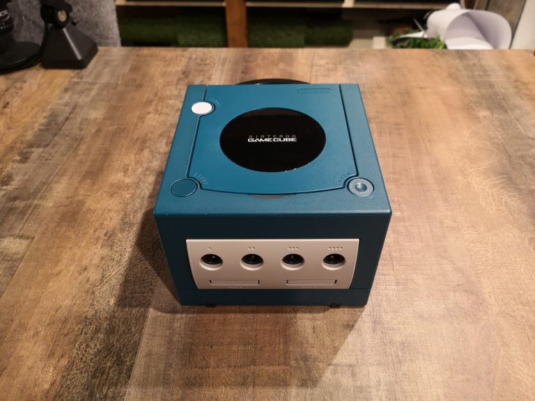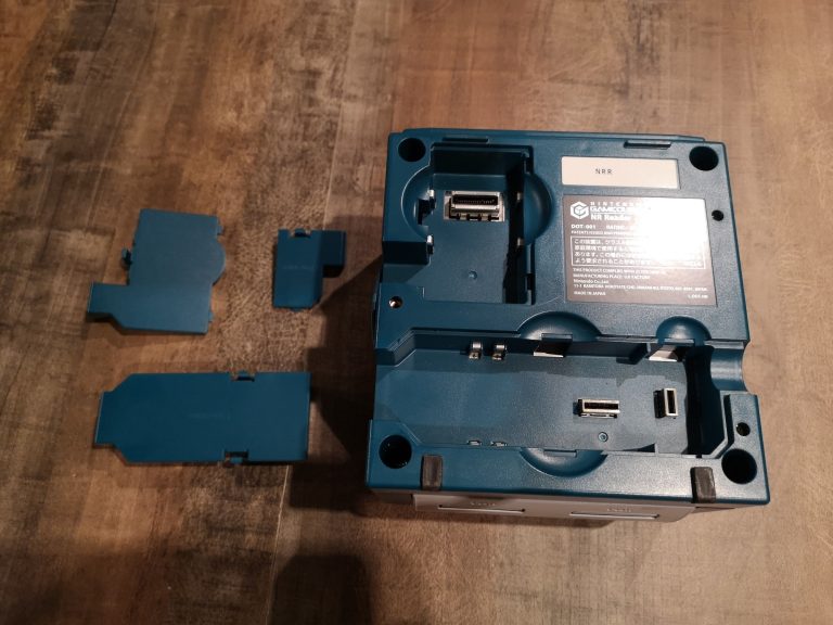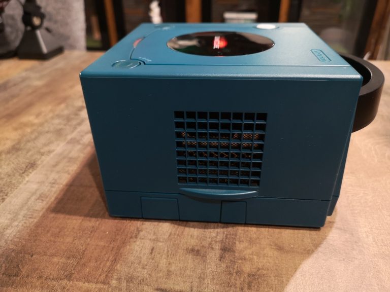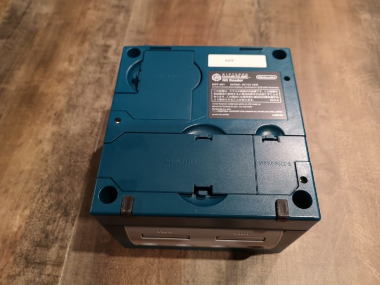 Wie eine Farb-Sonderedition kommt sie daher. In einem dunklen Grün-bläulichen Ton wirkt sie sehr ansprechend und besonders. Von Außen dem normalen Gehäuse der Konsole 1:1 nachempfunden. Lediglich der Region-Switch und ein Nintendo Siegel lassen einem klar werden, das es sich um etwas besonderes handelt. Sogar die Spindel im Disc-Laufwerk hat die Farbe des Gehäuses. Auf dem Typenschild steht unterm Nintendo GameCube Schriftzug NR Reader. Die Seriennummer der Konsole beginnt mit NRR, heißt diese Konsolen sind extra durchnummeriert. Sämtliche Expansion-Ports, die 4 Controller-Ports und die beiden Memory-Card-Slots sind vorhanden. Also konnte auch direkt jegliches Zubehör getestet werden.