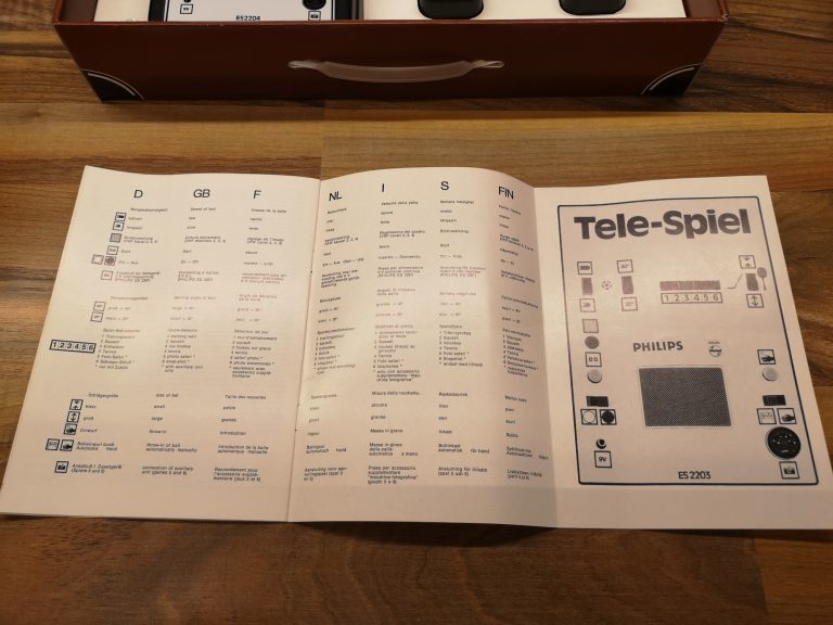 Seriös und technisch kommt die Tele-Spiel-Reihe daher. Alle hatten das selbe kompakte Gehäuse-Maß und nur das Layout wurde angepasst. Alle Schalter und Taster sind in ihrer Reinform verbaut, keine designten Kappen vorhanden. Schlicht, funktional, aufgeräumt. Mit sauberen, feinen Drucken auf der Alu-Platte. Das Design wirkt nicht so verspielt wie die üblichen Konsolen, eher wie ein Messinstrument. Würde sich auch in eine Labor-Landschaft einbringen. Dementsprechend versuchte man hier denke ich auch eher das Erwachsenen-Publikum zu erreichen. Philips stand ja auch eher für Qualität und Technik im erhabenen Preis-Segment. Das lange, fest montierte Antennenkabel habe ich üblicherweise wieder durch eine RF-Cinch-Buchse ersetzt. Die Konsole kommt in der OVP sauber verpackt mit abgedeckten Kabeln. Zu öffnen wie ein Koffer und auch so in der Optik konzipiert. Eine Hübsche Abwechslung zu den üblichen Kartonagen mit Styropor Blöcken im Inneren. So lässt sich das gute Stück auch sauber einlagern und wegräumen nach dem Spielen.