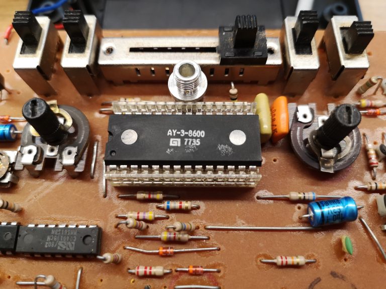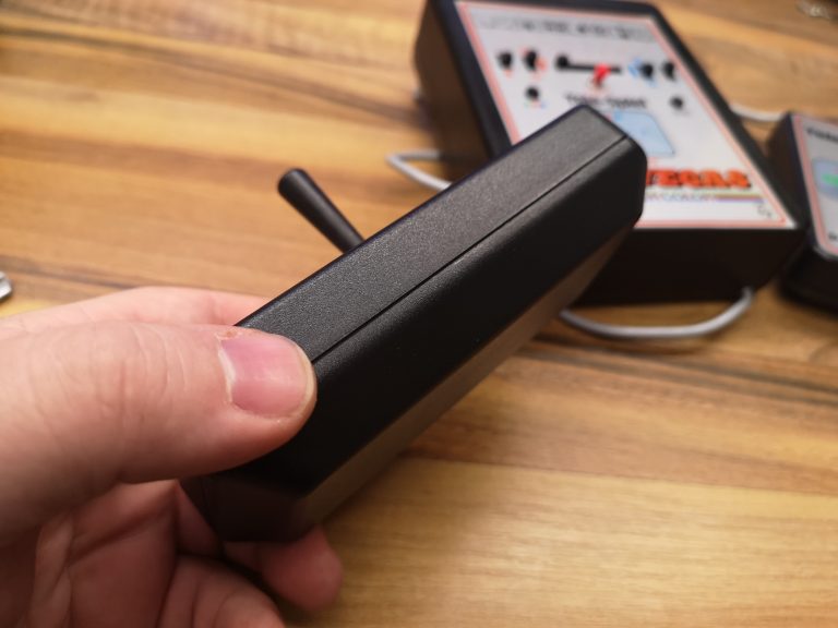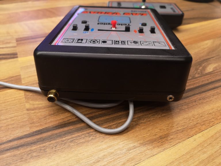 Die Steuerung der Spieler ist dank der Joysticks diesmal in 2 Dimensionen möglich. Seriös und technisch kommt die Tele-Spiel-Reihe daher. Alle hatten das selbe kompakte Gehäuse-Maß und nur das Layout wurde angepasst. Alle Schalter und Taster sind in ihrer Reinform verbaut, keine designten Kappen vorhanden. Schlicht, funktional, aufgeräumt. Mit sauberen, feinen Drucken auf der Alu-Platte. Das Design wirkt nicht so verspielt wie die üblichen Konsolen, eher wie ein Messinstrument. Würde sich auch in eine Labor-Landschaft einbringen. Dementsprechend versuchte man hier, denke ich, auch eher das Erwachsenen-Publikum zu erreichen. Philips stand ja auch eher für Qualität und Technik im erhabenen Preis-Segment. Das lange, fest montierte Antennenkabel habe ich üblicherweise wieder durch eine RF-Cinch-Buchse ersetzt.
