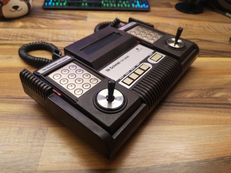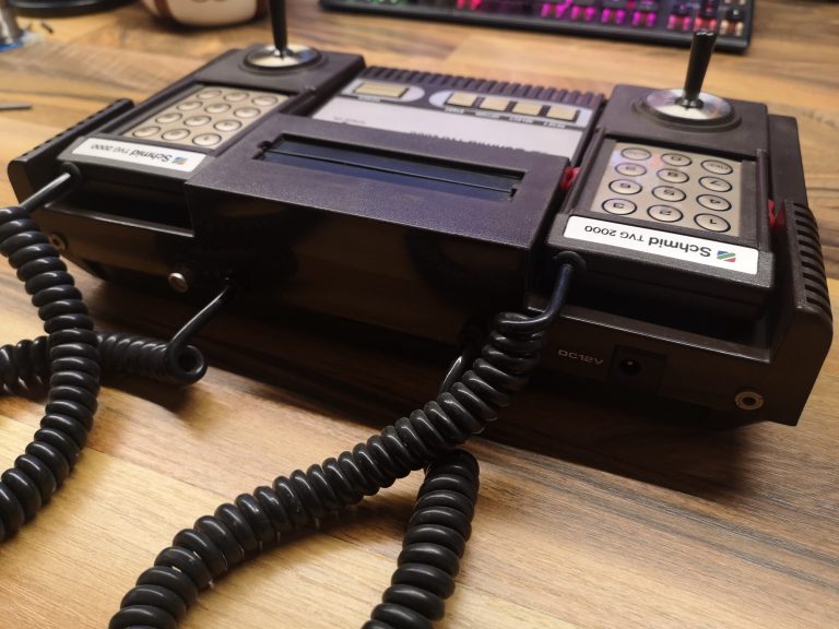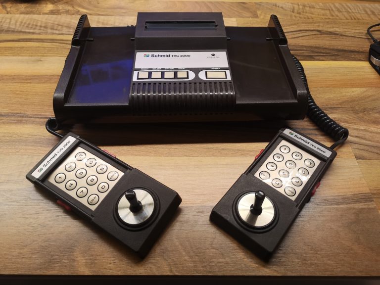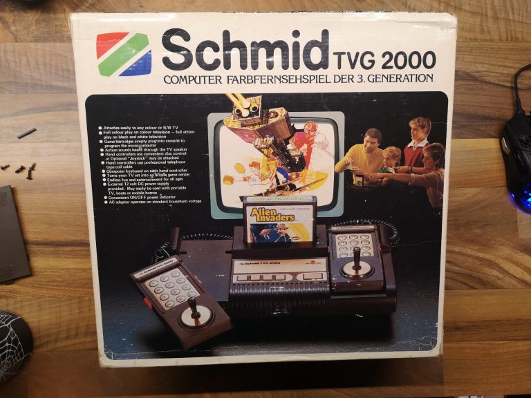 So langsam etablierte sich das heute bekannte Konsolen Konzept am Markt. Ein Gerät bei dem man Spiele tauschen konnte, in Form von Modulen. Schmid ist ein Hersteller der sich 1982 mit dem TVG 2000 das Hanimex HMG 2650 zur Basis genommen hat.
