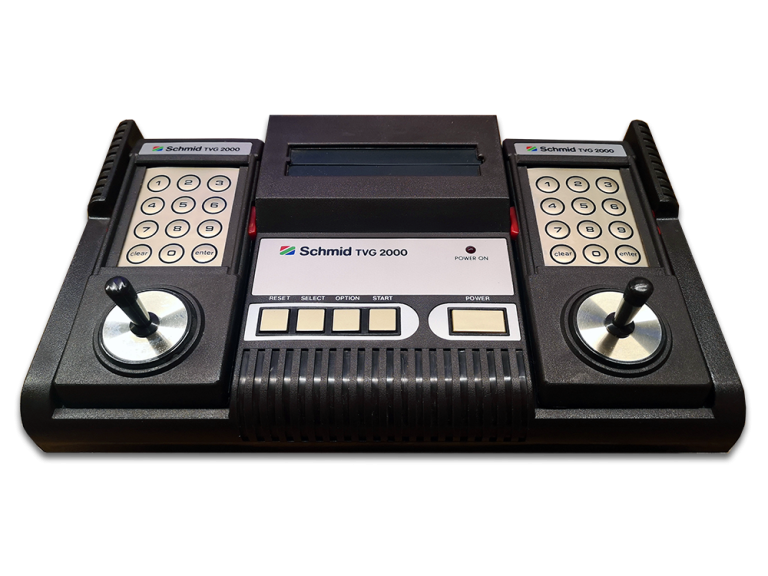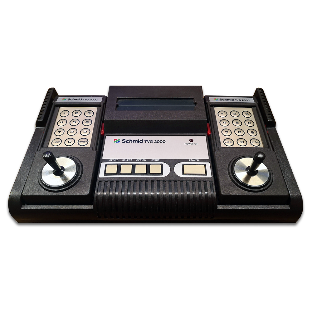 Leistungsstärker als seine Konkurrenz, dem bekannten Atari 2600 und dem Interton VC 4000 war das TVG 2000 von Schmid, das auf Basis des Hanimex HMG 2650 aufbaute. Auch Bandai, Emerson, Tchibo und Gig brachten in verschiedenen Regionen der Erde eine Konsole auf gleicher Basis heraus. Die Spiele waren somit alle untereinander kompatibel. Mit der Intellivision von Mattel und dem ColecoVision von CBS konnte Schmids Konsole in Darstellung und Sound jedoch nicht mithalten. Vom Grundaufbau der Konsole und Controller orientierte sich das TVG 2000 stark an Hanimex Vorlage, es setzte mehr auf abgerundete Kanten. Knapp 30 Spiele wurden für die Systeme released, welche damals gängig, Nummern auf das Cover bekamen.