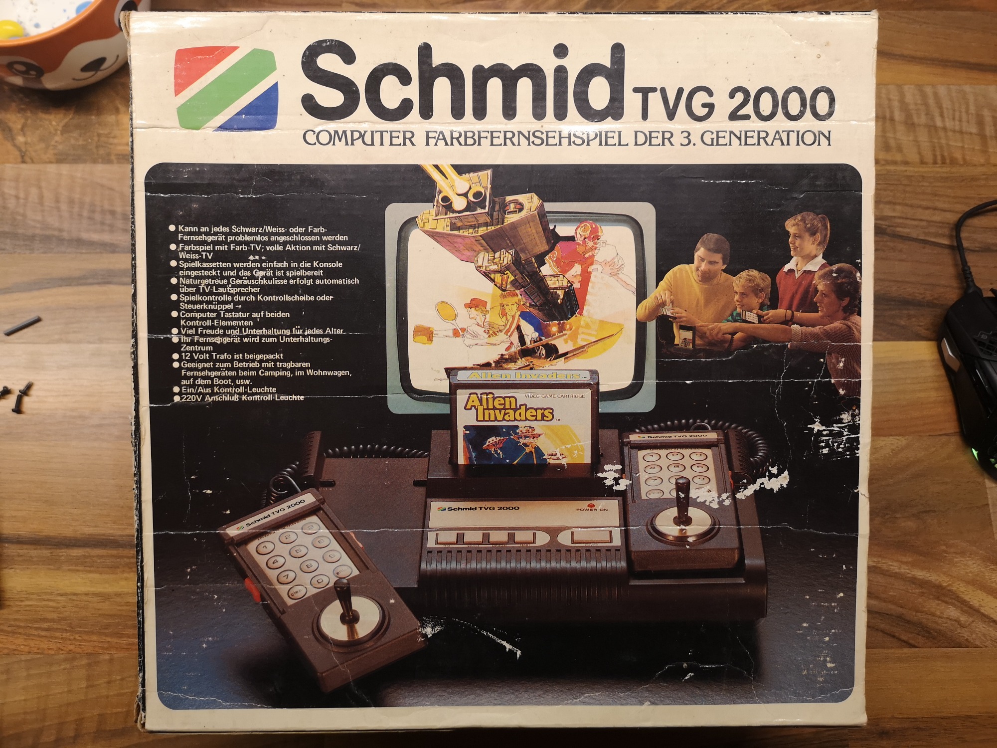 So langsam etablierte sich das heute bekannte Konsolen Konzept am Markt. Ein Gerät bei dem man Spiele tauschen konnte, in Form von Modulen. Schmid ist ein Hersteller der sich 1982 mit dem TVG 2000 das Hanimex HMG 2650 zur Basis genommen hat.