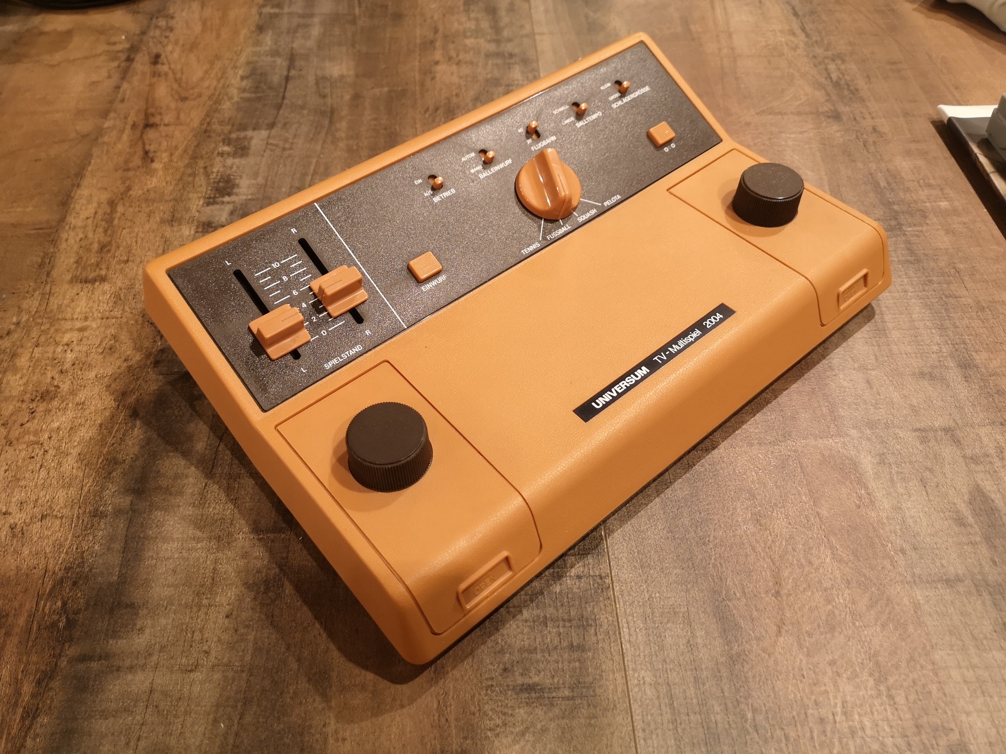 Eine von zahlreichen Pong-Konsolen und Variationen. Hier aus dem Hause Universum mit 4 Games und der Drehregler-Steuerung. Release dieser Variante war im Jahre 1977.