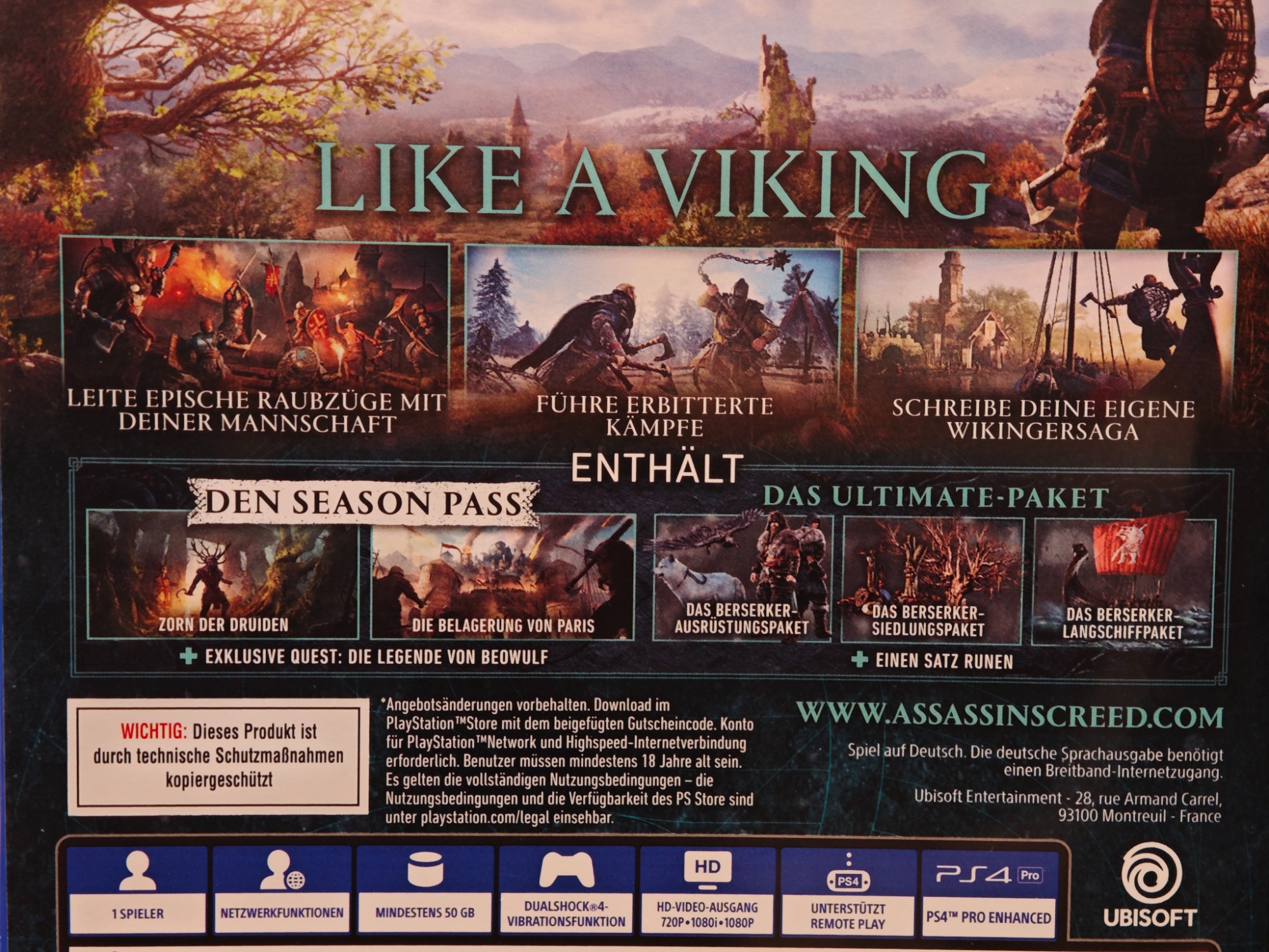 Typisches Assassin's Creed Gameplay trifft auf eisenharte und brachiale Mythologie der Wikinger Zeit. In diesem Teil könnt ihr wählen zwischen einem männlichen und weiblichen Hauptcharakter. Wie alle Assassin's Creed Spiele ein Must-Have.