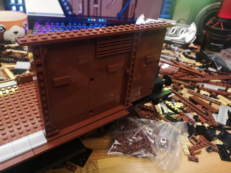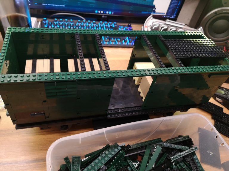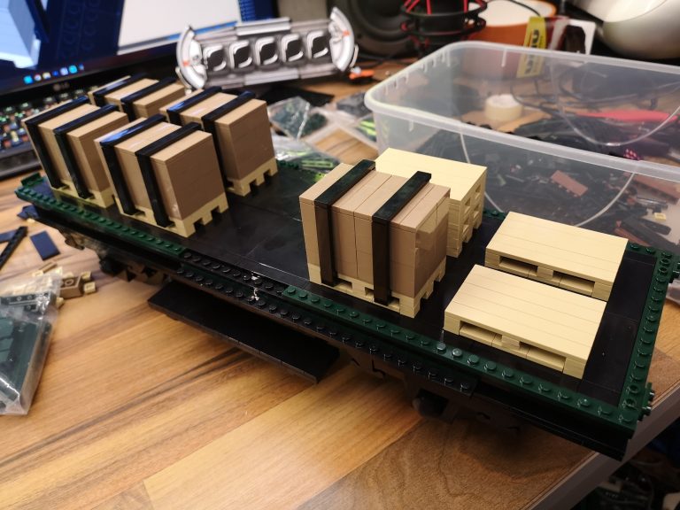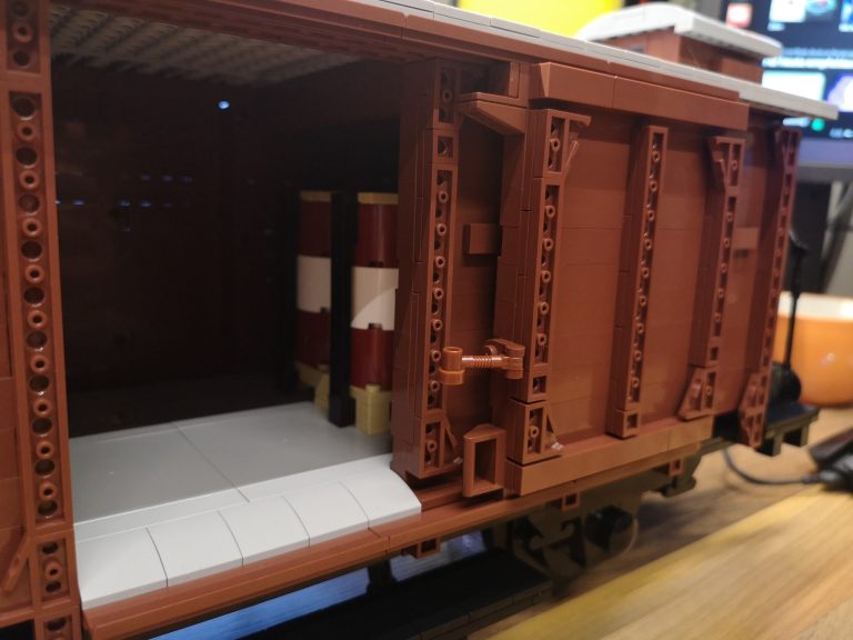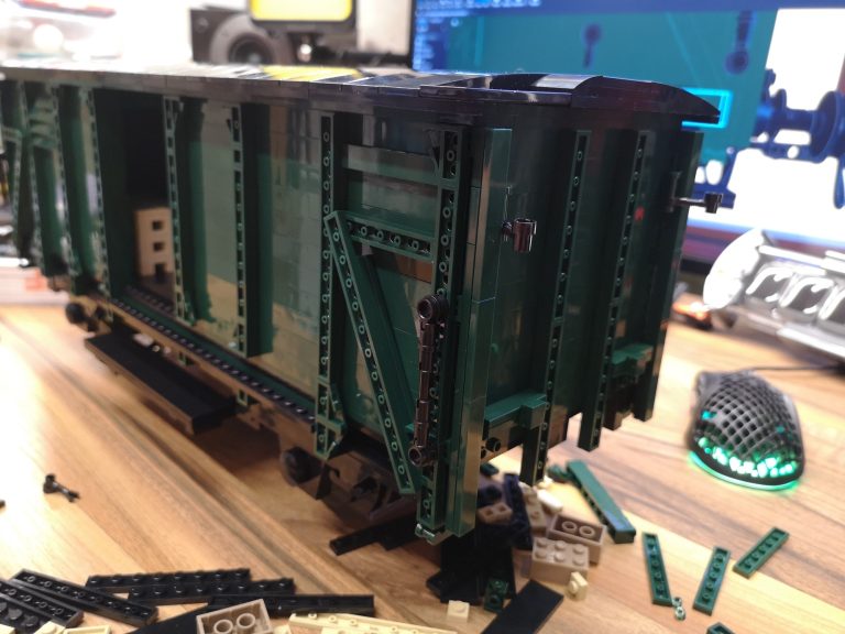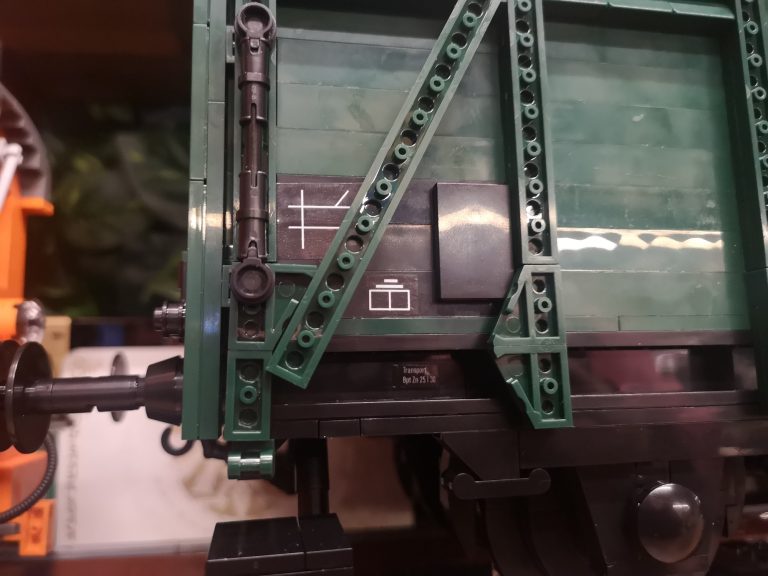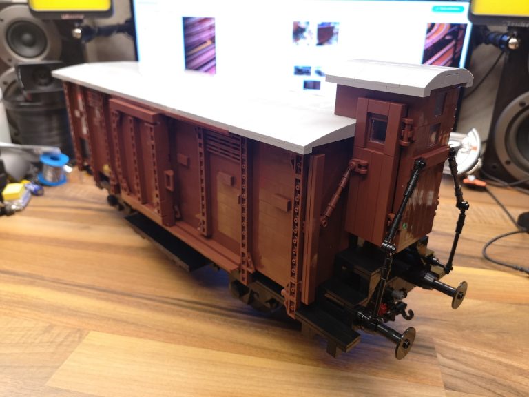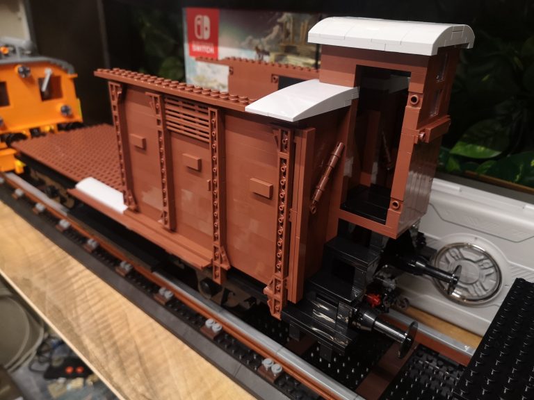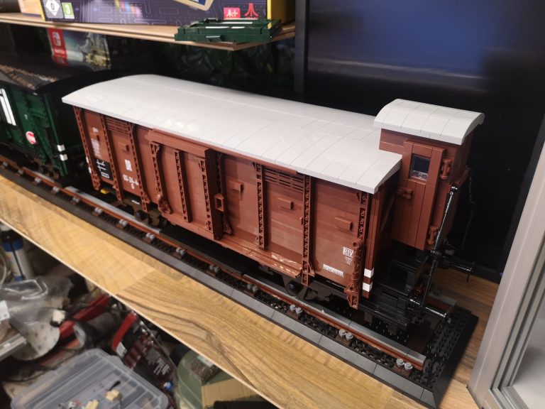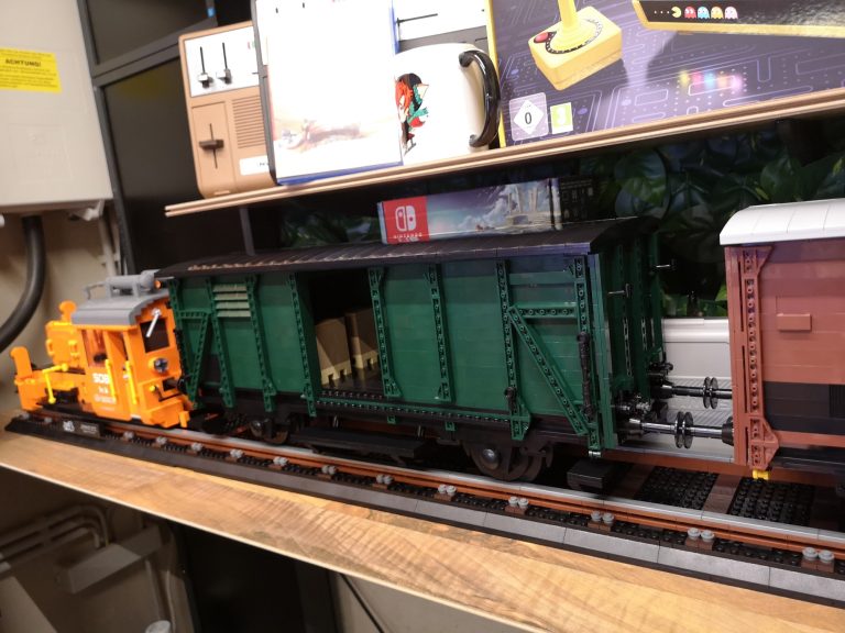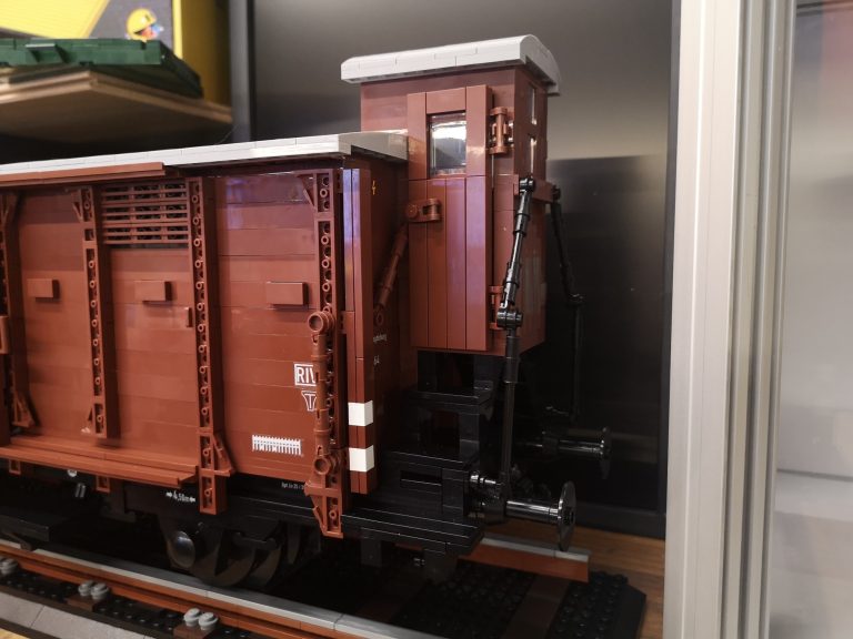 Das Bauen der beiden Waggons gestaltet sich doch abwechslungsreicher als gedacht. Durch den immer wieder anders gestalteten Aufbau jeder Schicht der Seitenwände, wird es nicht langweilig. Immer wieder kommen Brackets oder andere Steine in die Schichten für die spätere Montage der Nietenbänder oder anderer Details. Zusätzliche Abwechslung bietet der Bau des Ladeguts, sowohl in Technik, wie auch in Farbe. Mit dem Euro-Paletten Konzept lassen sich auch noch viele andere Möglichkeiten umsetzen, genauso wie mit der Brickbuilt-Ladungssicherung. Vom Schwierigkeitsgrad eine Stufe höher ist auf jeden Fall der braune mit seinem Bremserhäuschen. Hier ist der gesamte Aufbau, von Bodenplatte bis Dach stark abgeändert und sorgt so auch für zusätzliche Abwechslung.
