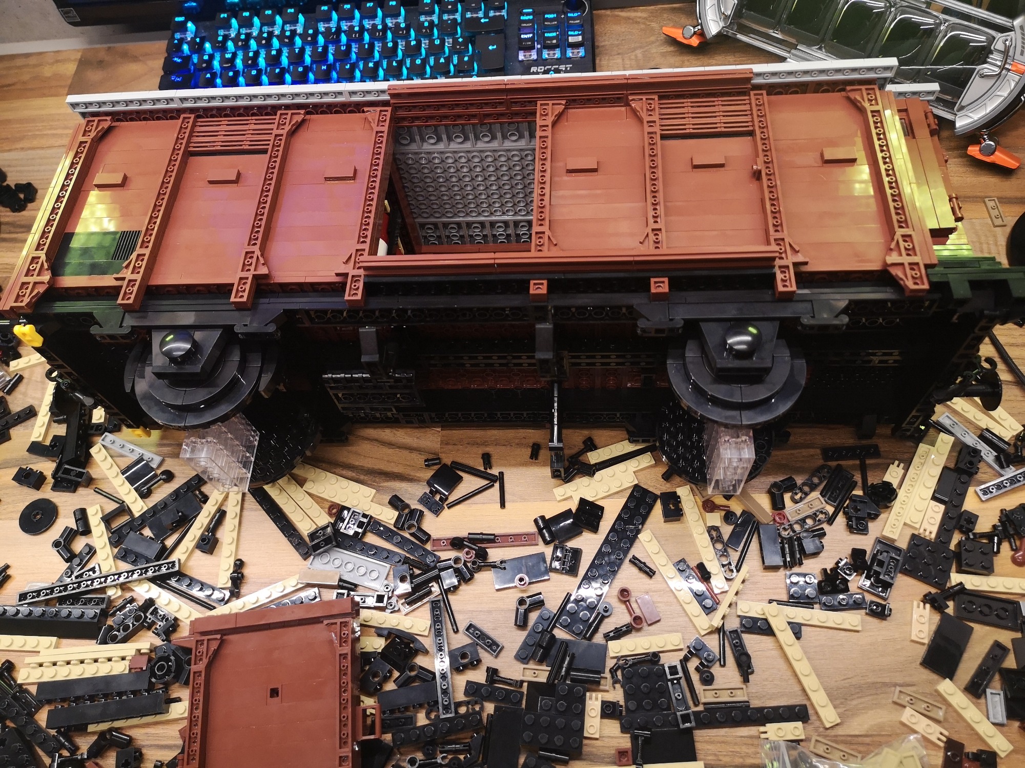 Man erwischt sich ständig mit einem Grinsen beim Bau oder Begutachten des bis dato fertiggestellten Bauabschnitts. Die Größe dieses Maßstabs kommt auch bei Waggons gut rüber. Man war ja bei den BlueBrixx Display Loks schon immer überwältigt. Der Innenraum ist ja durchgefliest, das Anbringen dieser und das Entstehen der Fläche lässt einen Vermuten, was für Klötze da entstehen. Der Wändebau motiviert, da man hier schön Meter macht, Brick um Brick wächste der Umbaute Raum. Ein Hochgefühl kommt aber bei Vollendung des Dachs. Wenn man zum ersten mal seine Hände auf diese große Fläche legt und den Waggon bewegt. Auch das Gewicht ist bemerkenswert. So große Spielzeuge machen einfach Laune.