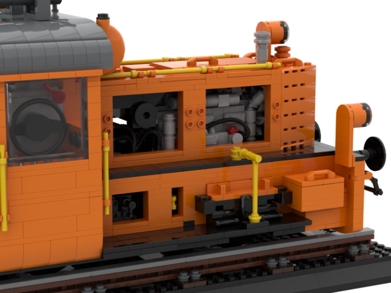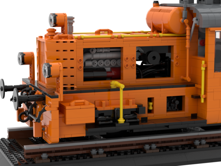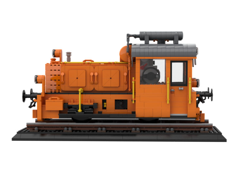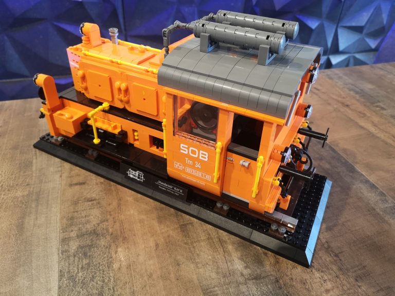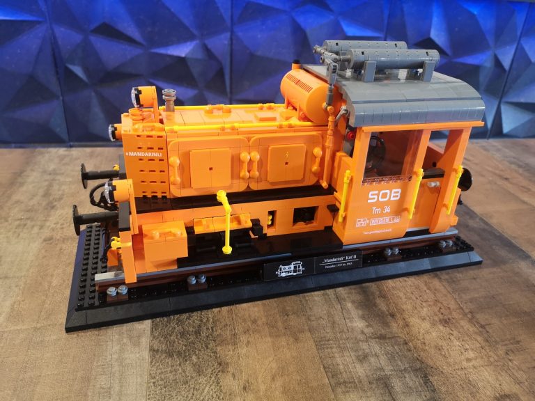 Ich liebe die großen Display Modelle von Bluebrixx. Es ist immer wieder beeindruckend wie hoch der Detailgrad ist und wie riesig die dicken Loks sind. Doch warum immer nur die großen dachte ich mir... Der Maßstab ist doch bestimmt auch super für kleines Schienengut. Also fix ans Studio gesetzt und drauf los gebastelt. Mit einigen Unterbrechungen habe ich aber dann ein Modell zur Baureife hin fertig bekommen. Die Köf II ist in ihrer kompakten Art doch ideal um mal zu sehen, wie sie sich neben den Bluebrixx Riesen so macht. Gleichzeitig wollte ich eine komplex interessante Variante von ihr haben, die ich so in Klemmbausteinen noch nicht gesehen habe. Ich stolperte über unsere schweizer Kollegen der SOB, der Schweizer-Ost-Bahn. Diese haben eine Köf II im Einsatz in knalligem Orange, eine sehr interessante Optik, trägt auch den Spitznamen 'Mandarinli'. Zudem fand ich die Zusatz-Tanks mit der Verrohrung auf dem Dach noch mega interessant. Die kleine Lok wirkt zugestopft mit Technik, das wollte ich nachbauen!