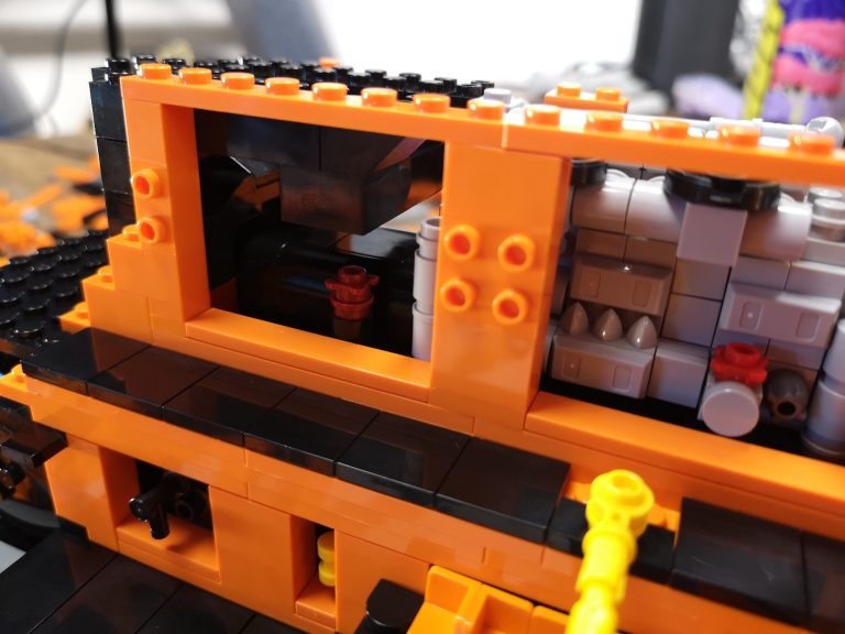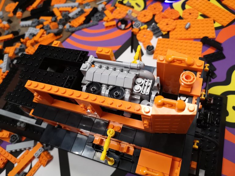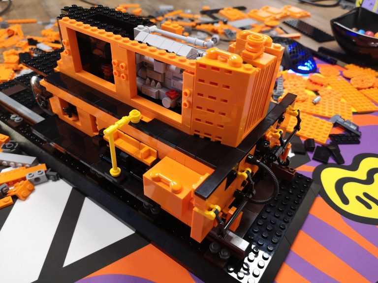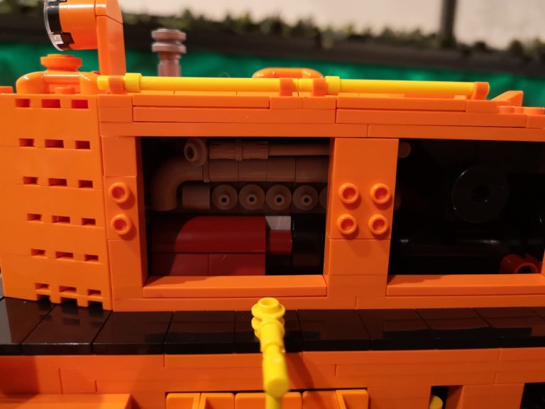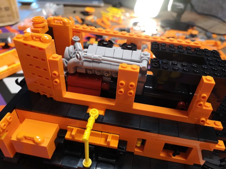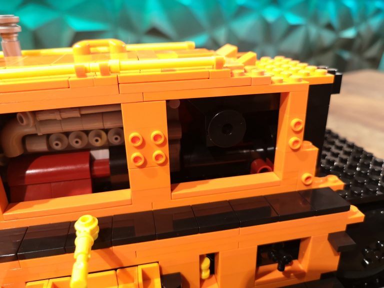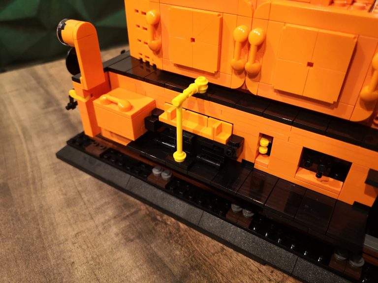 Bis auf fehlende Teile seitens meiner Lieferung von Joygobricks, wo ich dann im Stream stark improvisieren musste, lief der Bau soweit fehlerfrei. Die Konstruktion ist trotz der 'nur' 2 Stützen unter den Achsen sehr stabil. Es war wie immer rein mit 3D-Modell teils krampfig herauszufinden wo man anfängt und was als nächstes kommt, aber das bin ich ja gewohnt. Die Farbe Orange knallt auf jeden Fall richtig gut und ist sehr homogen. Ich bin sehr froh das Modell in dieser Ausführung genommen zu haben. Die Motorklappen lassen sich sogar an den Griffen lösen, ohne dass diese abgehen. Die Verrohrungen passen und die gelben Akzente ergeben ein tolles Gesamtbild. Von den Bautechniken gerade bei Den Tanks auf dem Dach und dem Formen der Gesamtsilhouette bin ich doch von mir selbst beeindruckt, keine Ahnung wie man immer auf sowas kommt...