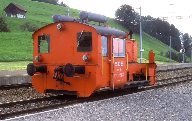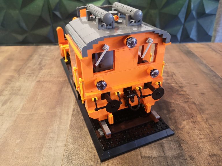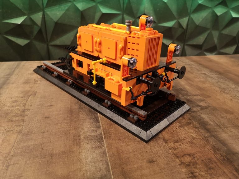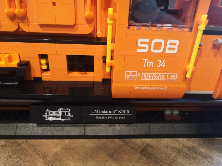 Eine meiner liebsten Kleinlinge auf Schiene ist die Rangier-Lok Köf II. Hier habe ich nun selbstständig eine im Maßstab 1:18 konstruiert in Anlehnung an die Bluebrixx Display Modelle. Diesmal im leuchtenden Orange der Schweizer Süd-Ost-Bahn SOB.