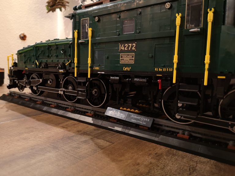 Wer auf Züge steht und Spaß an einem riesigen Puzzle hat, dem sei dieses Set ans Herz gelegt. Es baut sich sehr abwechslungsreich, gerade wenn man am Führerhäuschen angekommen ist. Es wurd sich extremst ausgetobt in jeglicher Hinsicht. Die Preis/Leistung von 269 € zu über 30 Stunden Bauvergnügen ist in der Klemmbausteine Welt ein wahres Schnäppchen. Mit üppigen 104 cm (!!) misst das Ergebnis eine beeindruckende Größe und hat mit fast 7 kg Gewicht ein angemessenes Tribut an die schweizer Eisenbahn-Geschichte. Ich bin auch gerade nach dem Folieren einfach nur begeistert und es macht sich herrlich im Regal neben der V100.