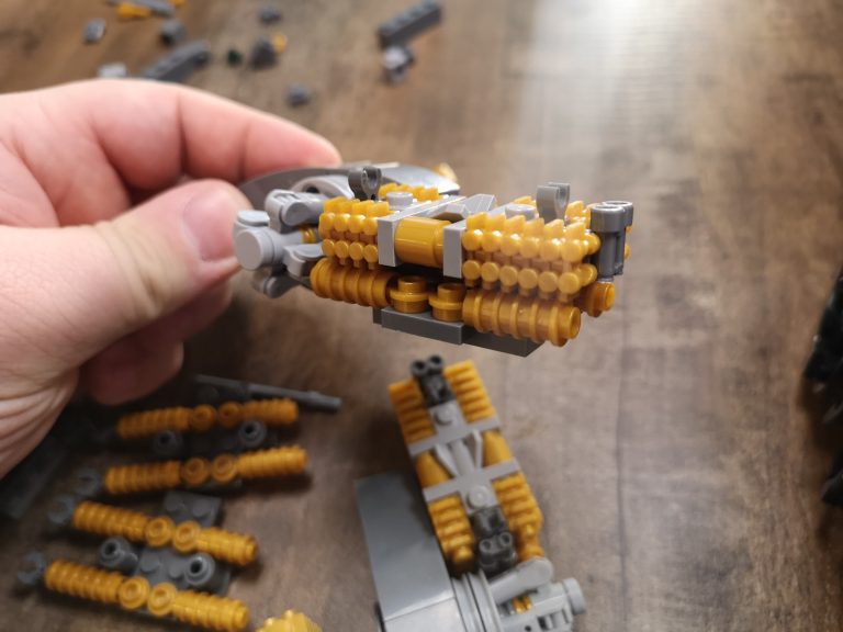 Ein Wechselbad der Gefühle. Wie ein gutes 30 Stunden Spiel. Man bekommt alles, von frustrierender Teilesuche und filigraner Fleißarbeit, über nervige Teile, die konstruktiv immer wieder abfallen, bis hin zum beeindruckenden Zweckendfremden von Normteilen, verrückten Baurichtungswechseln, spannenden Winkellösungen und eine befriedigende Flut an Üppigkeit von Teilen und Details. Man braucht definitiv Geduld, in meinem Fall auch Sekundenkleber und Spaß an dem Ergebnis. Der Weg ist teilweise nicht zu unterschätzende Arbeit, denn das Set ist sehr anspruchsvoll. Die Anleitung an sich ist gut gemacht, man übersieht nur schnell das Drehen des Modells, da viel ähnlich aussieht. Also aufmerksam bauen, das spart Frust. Am Ende jeder Tüte bleibt immer ein Teil jeder kleinen Sorte über. Sollte also ein Teil öfter über bleiben, weiß man, die hat man vergessen und kann schnell korrigieren.