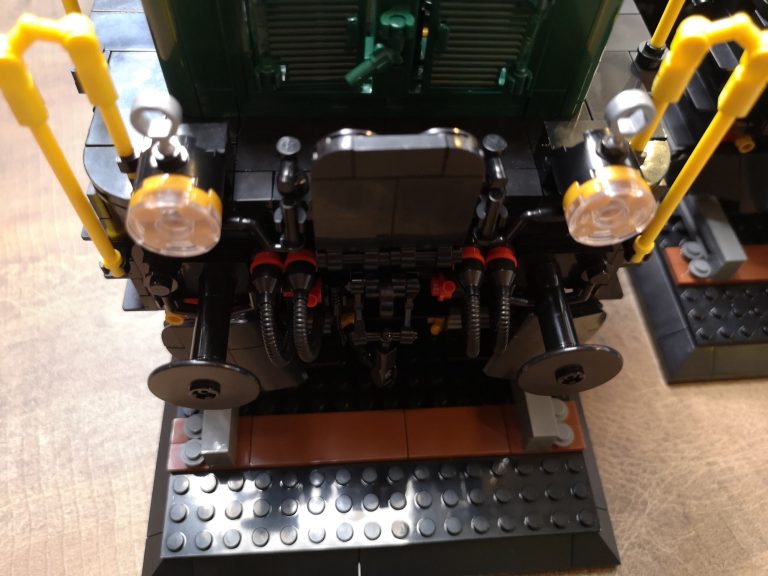 Was ich mir von dem historischen Schätzchen so ergooglen konnte, versuche ich jetzt mit meinen gewohnten Klebefolien dem Original anzugleichen. Als erstes habe ich Fenster Umrandungen der Türen und die Plaketten des Herstellers und Zugnummer nachgebildet. Zu kleine Schriften stelle ich wie so oft als Linien dar. Da das ganze Fahrwerk schwarz gebaut wurde, erkennt man von der originellen Technik fast gar nichts. Hier habe ich mit silbener Folie die blanken Kanten der Räder und des Gestänges nachempfunden. Das Original hat hier nämlich oft die Konturen wie angeschliffen gehabt. Ich finde das Set macht dadurch, mit noch angedeuteten Nieten, sehr viel mehr her und die ganze Arbeit in die Details werden nun auch aus der Ferne gut erkennbar.