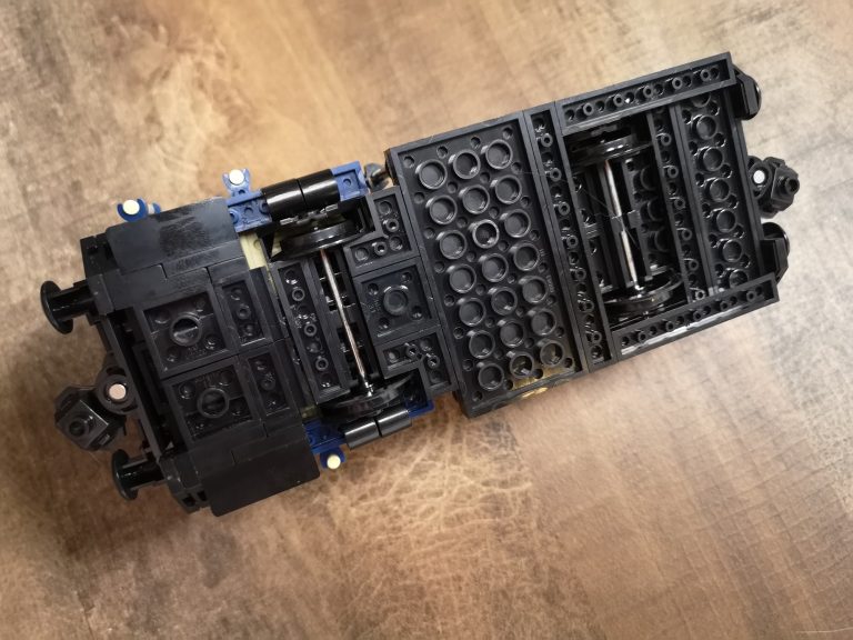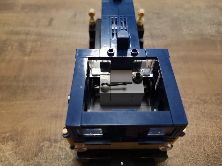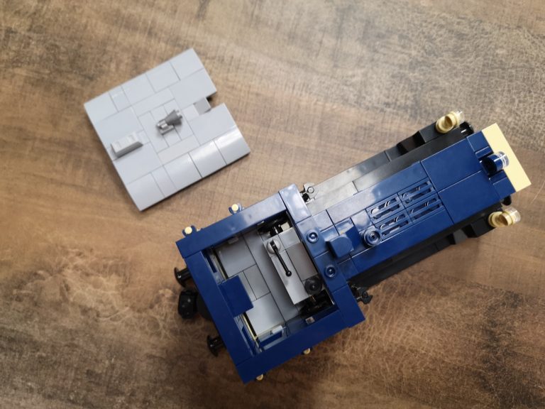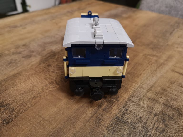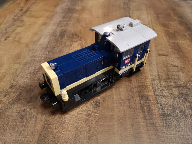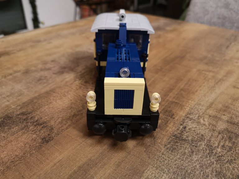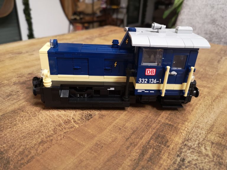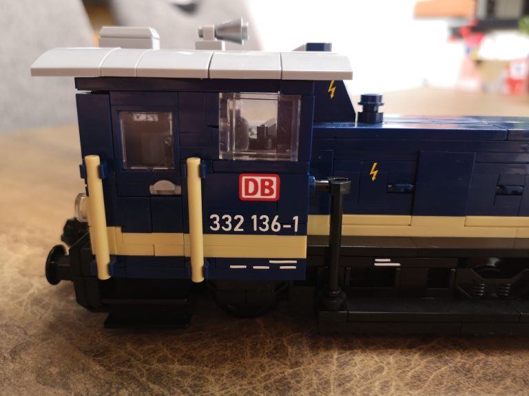 Ganz klassisch im edlen Blau und Beige kommt die DB Variante daher. Bluebrixx hat hier wirklich eine kleine, toll zu bauende Lokomotive auf den Markt gebracht. Sie passt perfekt zu ihren ebenfalls erhältlichen Leistungsgruppe I und II. Die Reihe baut in 8w Breite, trotzdem sehen auch 6w Güterwaggons passend an ihr aus. Das Dach lässt sich zum besseren Einblick in die Führer-Kabine abnehmen. Mit knapp 19 cm in der Länge kommt sie immer noch kompakt daher und findet einen Platz in der Sammlung.