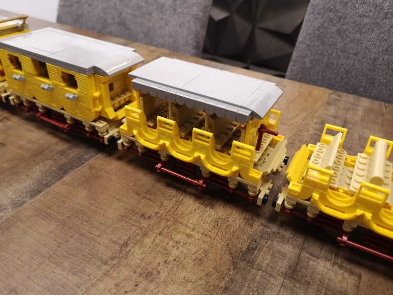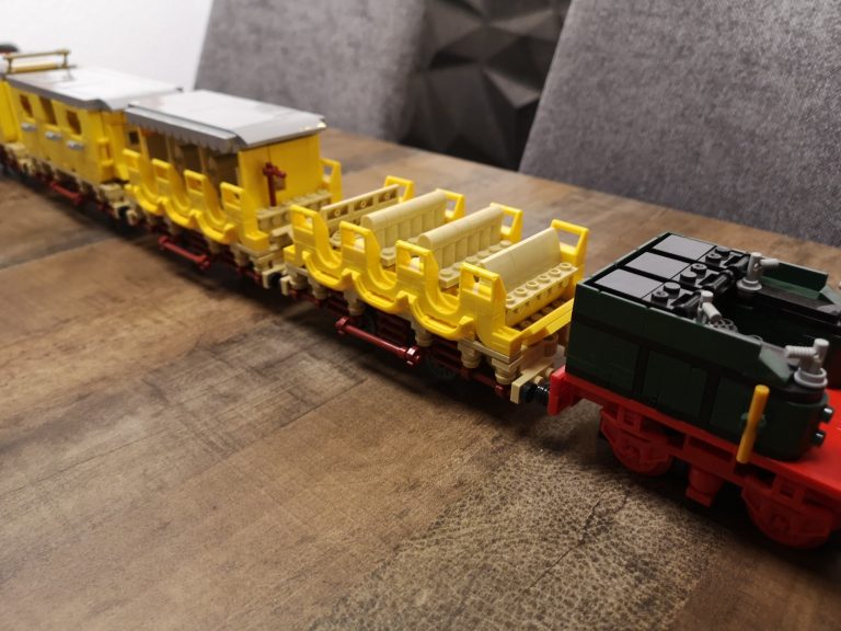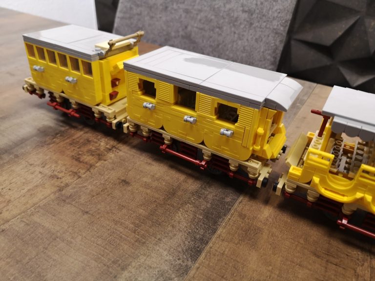 Unfassbar dass dieser Ur-Klassiker überhaupt mit seinen Rundungen und schnörkeligem Design mit Klemmbausteinen umsetzbar ist. Und dann nicht nur die Lok mit Tender, sogar mit allen Wagen die es damals gab. Ein absolutes Bauerlebnis. Dieses Set hat für den detailverliebten Modellbauer unter den Klemmern ganz klare Kaufempfehlung. Sehr viele schlaue Ideen die Optik umzusetzen wie zum Beispiel goldene Tassen für die Frontlichter oder umgedrehte Kotflügel für die Einstiege der Kutschenkasten-Aufbauten.