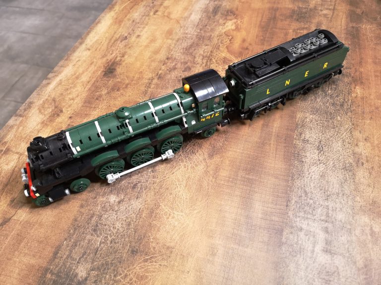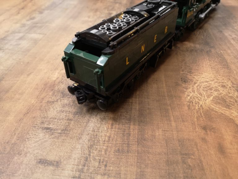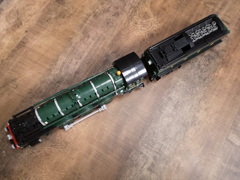 In der Dampflok Welt dominiert gerade bei uns ja ummer Schwarz mit etwas Rot. Da ist es eine willkommene Abwechslung hier nun mit einem Dark-Green und etwas Light-bluish-grey als Akzente arbeiten zu können. Dadurch wirkt die Maschine sehr edel und gleicht dem Original wie aus dem Gesicht geschnitten. Der Bau ist Dampflok typisch. An der Front habe ich jedoch noch leichte Änderungen vorgenommen wie die hellen Puffer und der Beleuchtung. Das Modell ist somit dem Original noch ähnlicher. Mit 649 Teilen ein schöner Zeitvertreib. Dampflok Fans kommen auf ihre Kosten und können sich über etwas mehr Farbe im Regal freuen.