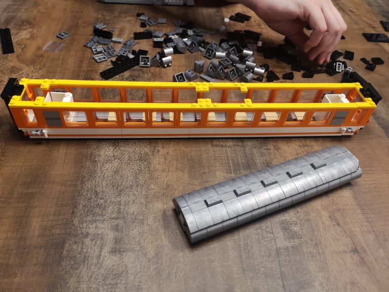 Ein angenehmer Zeitvertreib für zwischendurch. Wir haben den zu zweit gebaut. Einer baut Fahrwerk und Dach, der andere den Waggon-Körper. Mit verschiedenen Plates wird die Basis gebaut, wodurch der Boden sich stark biegt. Dies wird sich aber bis spätestens beim Einsetzen der Fensterreihen erübrigen. Dadurch steift das Set aus und wird gerade. Der Waggon ist am Ende sehr stabil und hat eine schöne Größe.