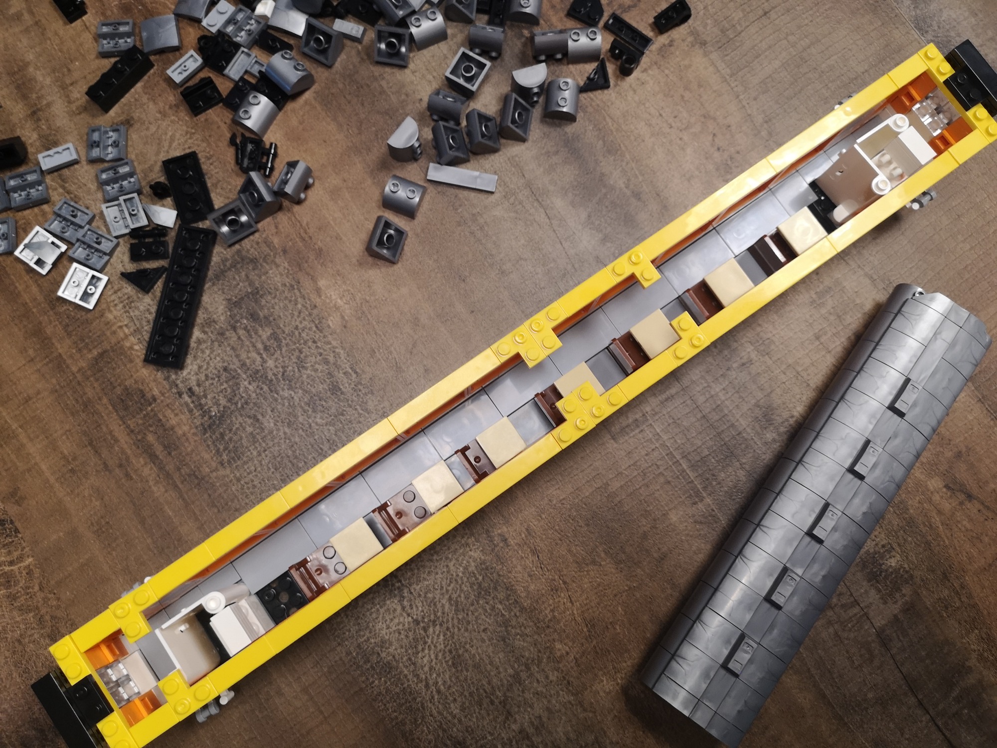 Ein angenehmer Zeitvertreib für zwischendurch. Wir haben den zu zweit gebaut. Einer baut Fahrwerk und Dach, der andere den Waggon-Körper. Mit verschiedenen Plates wird die Basis gebaut, wodurch der Boden sich stark biegt. Dies wird sich aber bis spätestens beim Einsetzen der Fensterreihen erübrigen. Dadurch steift das Set aus und wird gerade. Der Waggon ist am Ende sehr stabil und hat eine schöne Größe.