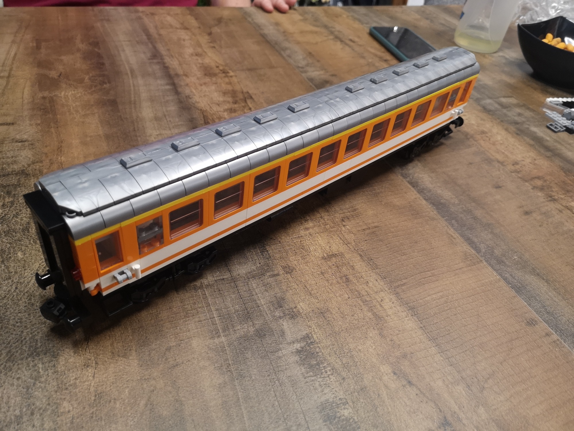 Der Bau macht Spaß, ist ein frühes BlueBrixx Modell, dadurch ist es etwas unausgereift an Bautechnik, aber Teile passen und es bleibt alles an seinem Platz. Ein solider Waggon, der durch seine Farbe hervorsticht und den Retro-Charme der alten Schnellzugwagen gut vermittelt. Ich denke er sollte in keinem Set fehlen, welches mit deutschem Fahrgut ausgestattet ist.