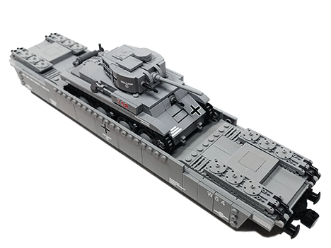 Mobiler, kleiner, wendiger Panzer der Wehrmacht. Mit seinen schmalen Ketten und Bauweise kommt er sehr gut in jeglichem Terrain zurecht. Er darf natürlich auch im Panzerzug nicht fehlen. Spannende Bauweisen und lustige Zweckentfremdungen finden hier Gebrauch. So sind die kleinen MG-Feuerrohre schwarze Schraubenzieher. Die Form des Turmes mit seinen Details ist ebenfalls gut getroffen. Die Abgasanlage rundet das ganze zudem ab.